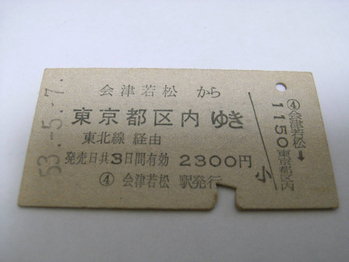 磐越西線 会津若松から東京都区内ゆき 東北線経由 昭和53年5月7日 会津若松駅発行 国鉄