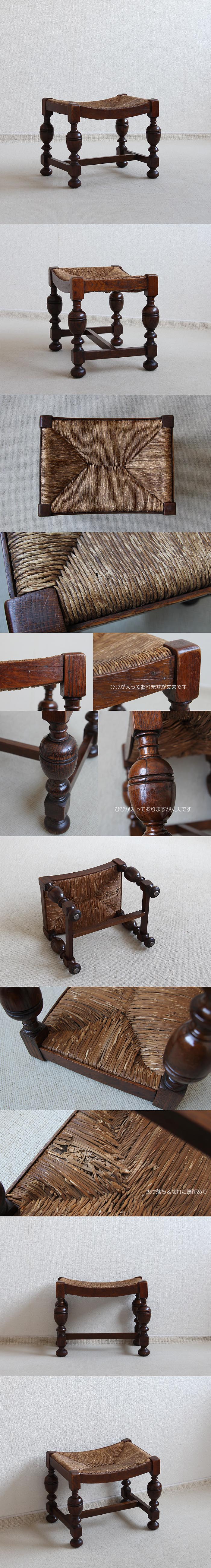 イギリス アンティーク ラッシュシート スツール イグサ 木製椅子 家具「編み込みシート」V-841