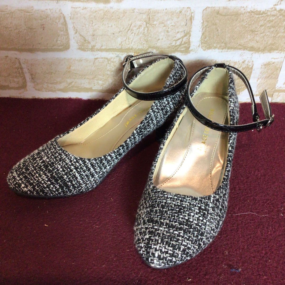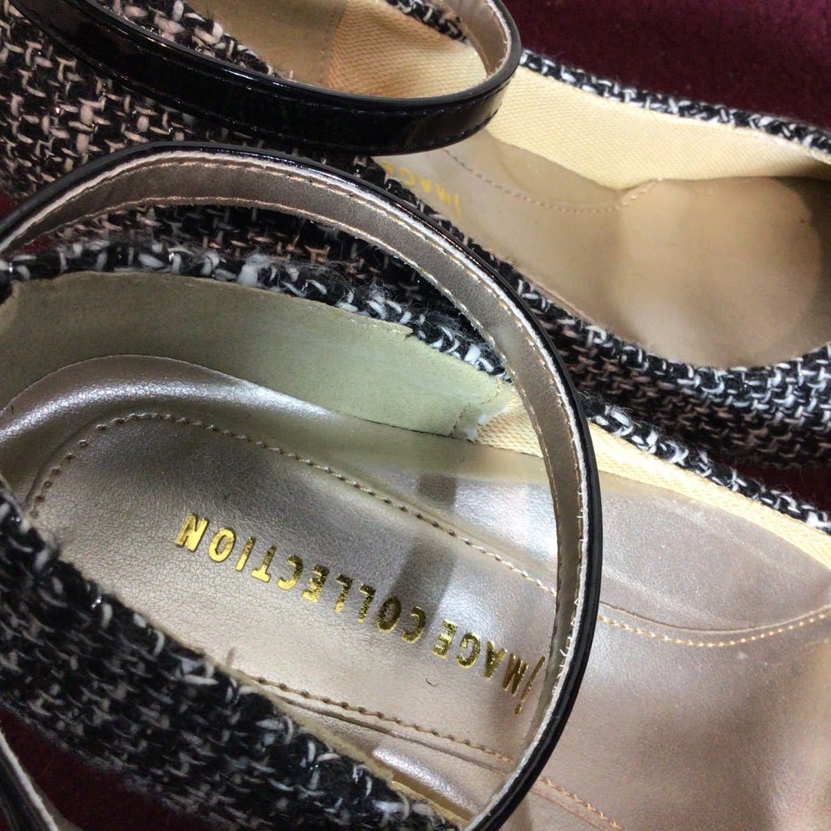 【売り切り!送料無料!】A-201 IMAGE COLLECTION!パンプス!ツイード!23.0cm!アンクルストラップ!黒!3way!新品!