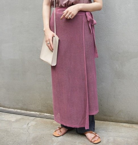 メッシュデザインが今年らしい印象の巻きスカート。