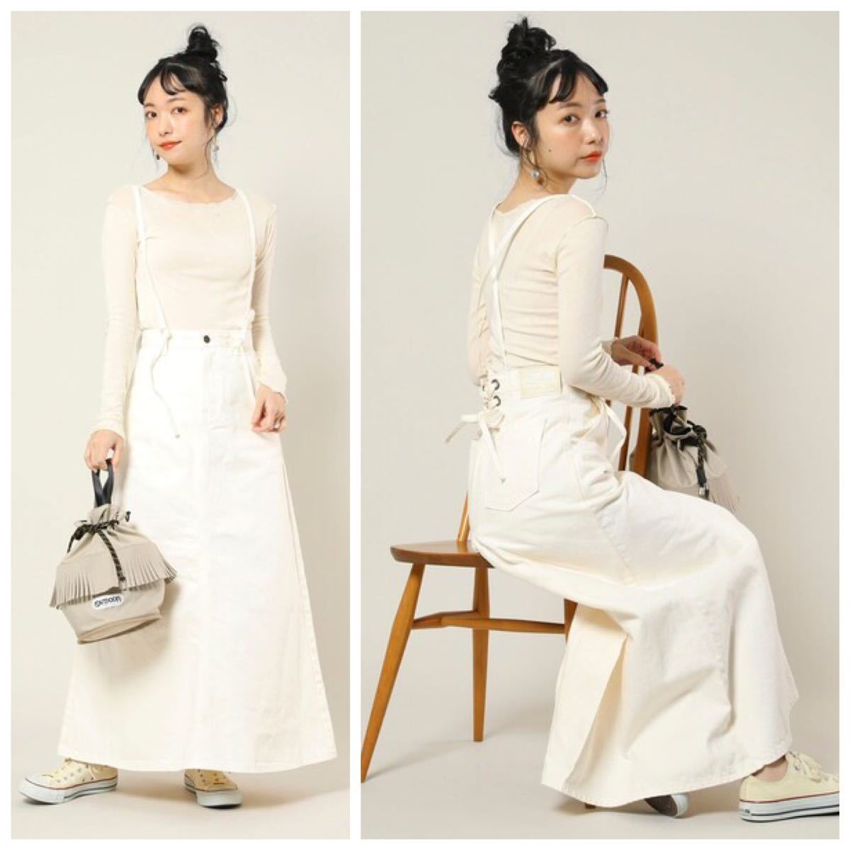 きれいに広がるプリーツとレースアップがお洒落な別注デニムスカートサロペット