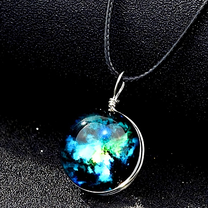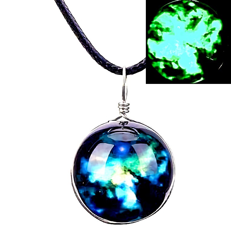 新品★送料無料★暗闇発光 銀河の天球青緑 ギャラクシー スフィアシルバーネックレス 誕生日プレゼント旅行花見春連休ギフト国内発送
