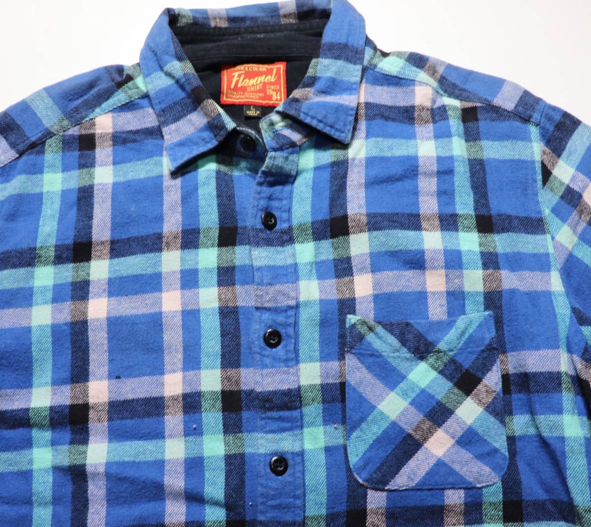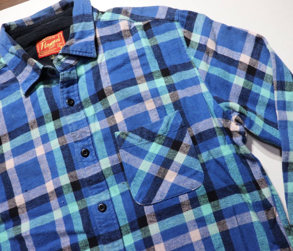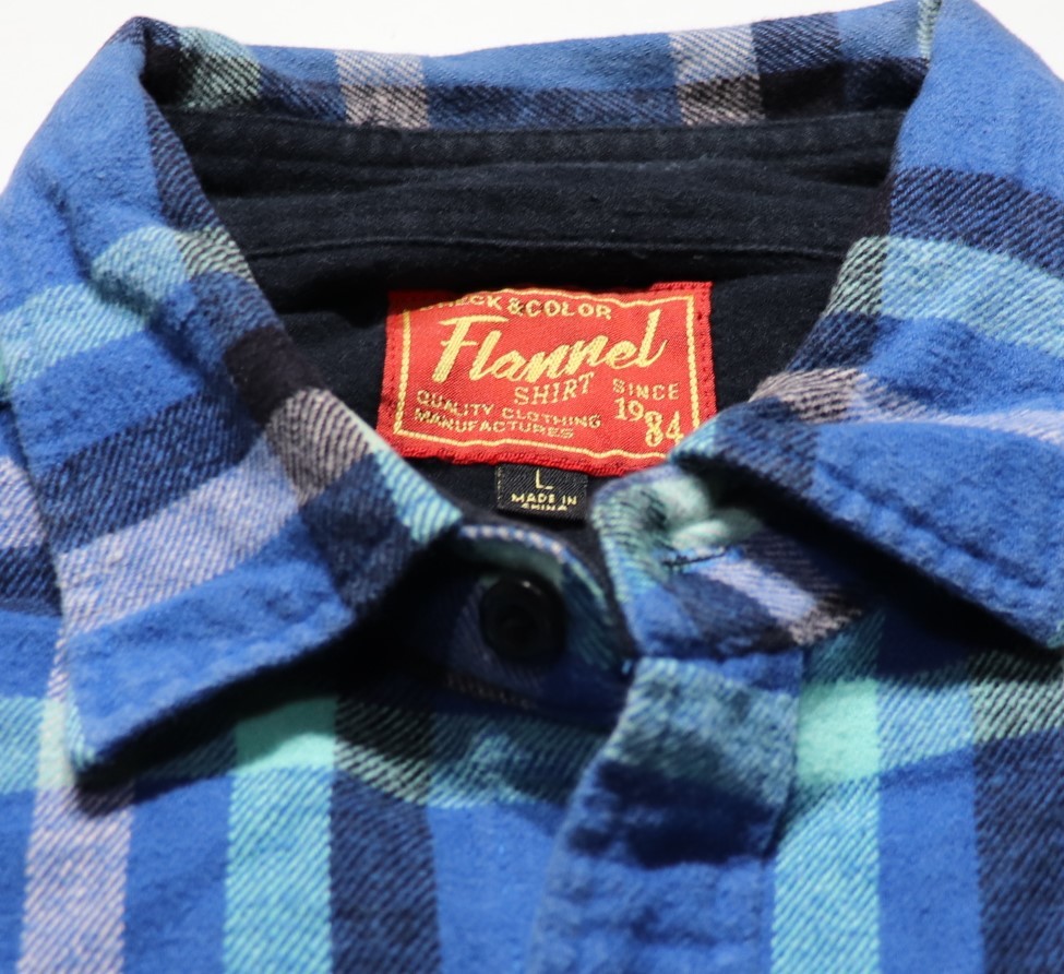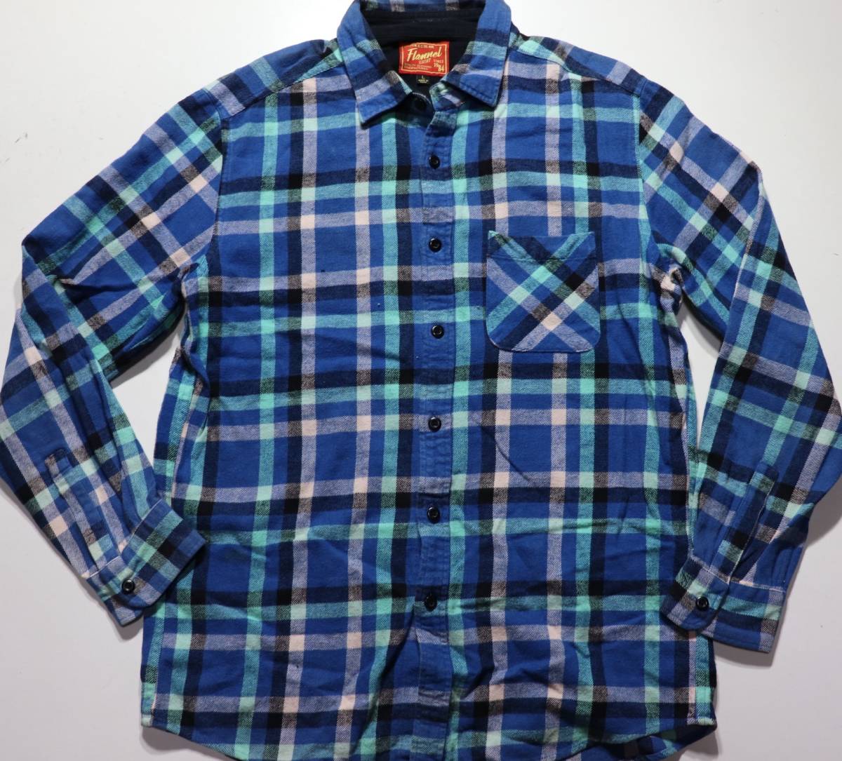 FLANNNEL▲長袖シャツ▲ネル素材▲ブルーのチェック▲サイズL