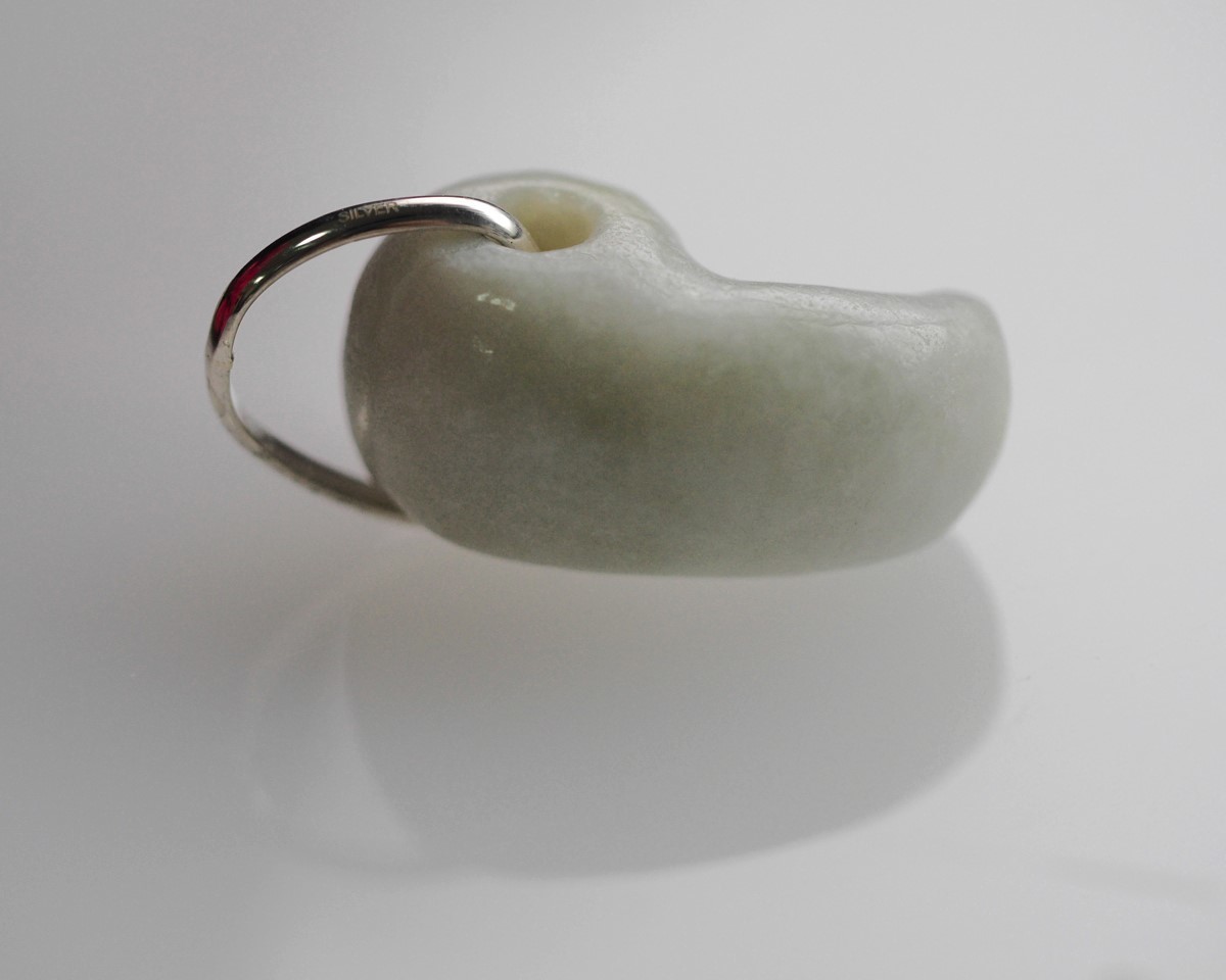 こちらはホワイト、グレーを混ぜ込んだ個性的なカラーを持つ糸魚川翡翠(天然無処理)です。