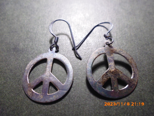 ベトナム戦争の時代、アートロックの時代に流行った ピースマーク のピアス。