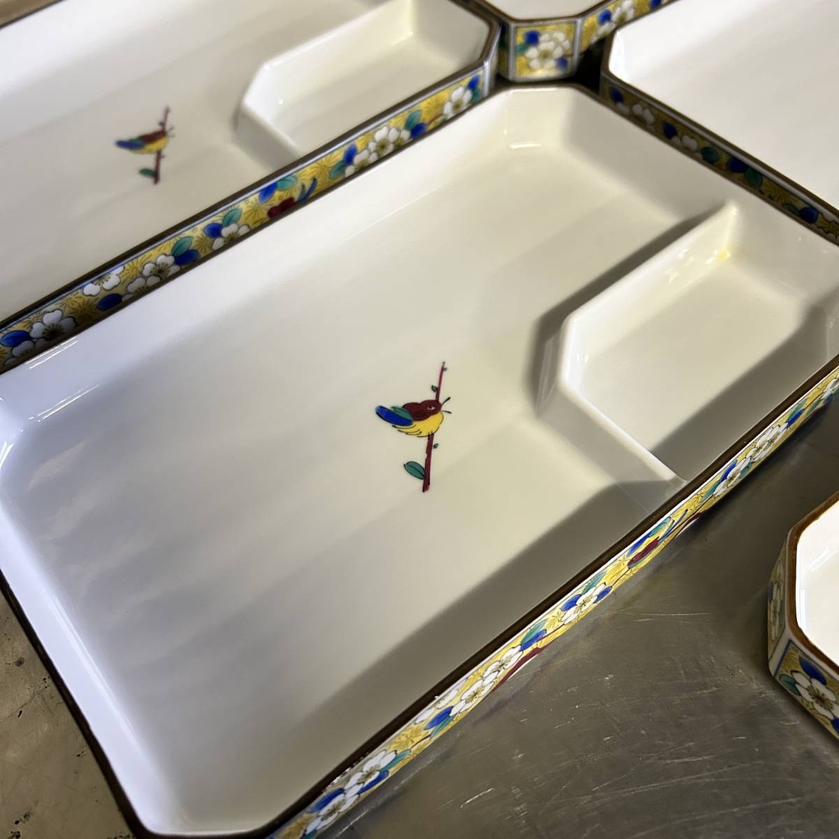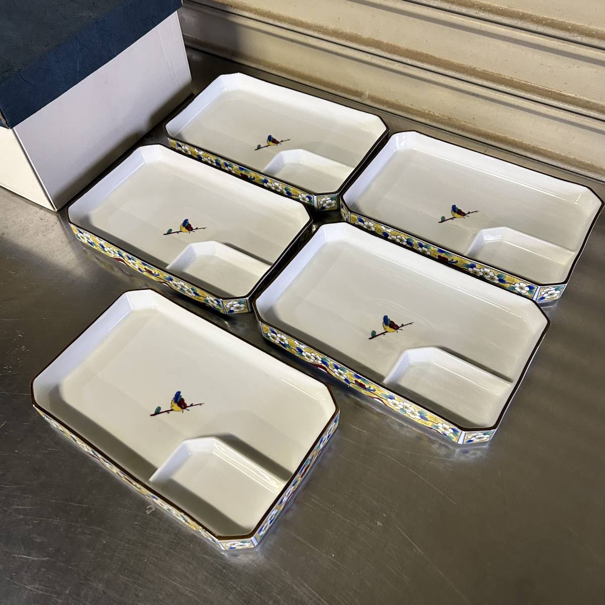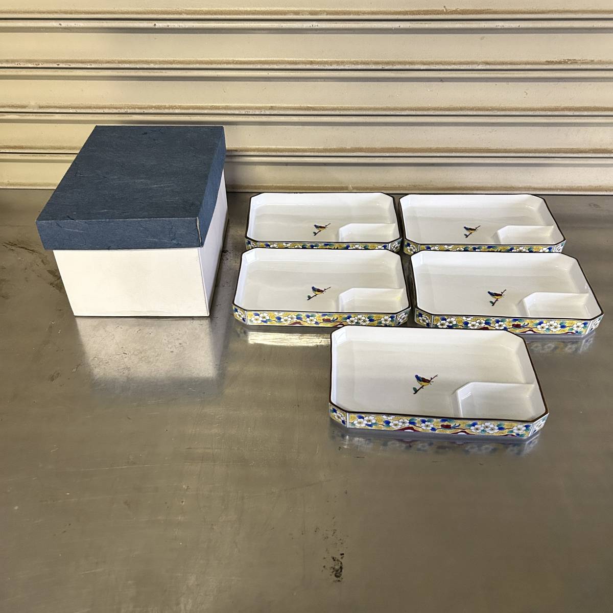 AL13★お皿★ 仕切皿 5枚 色絵彩華花鳥 箱付 食器 調理器具 店舗用 業務用 厨房用
