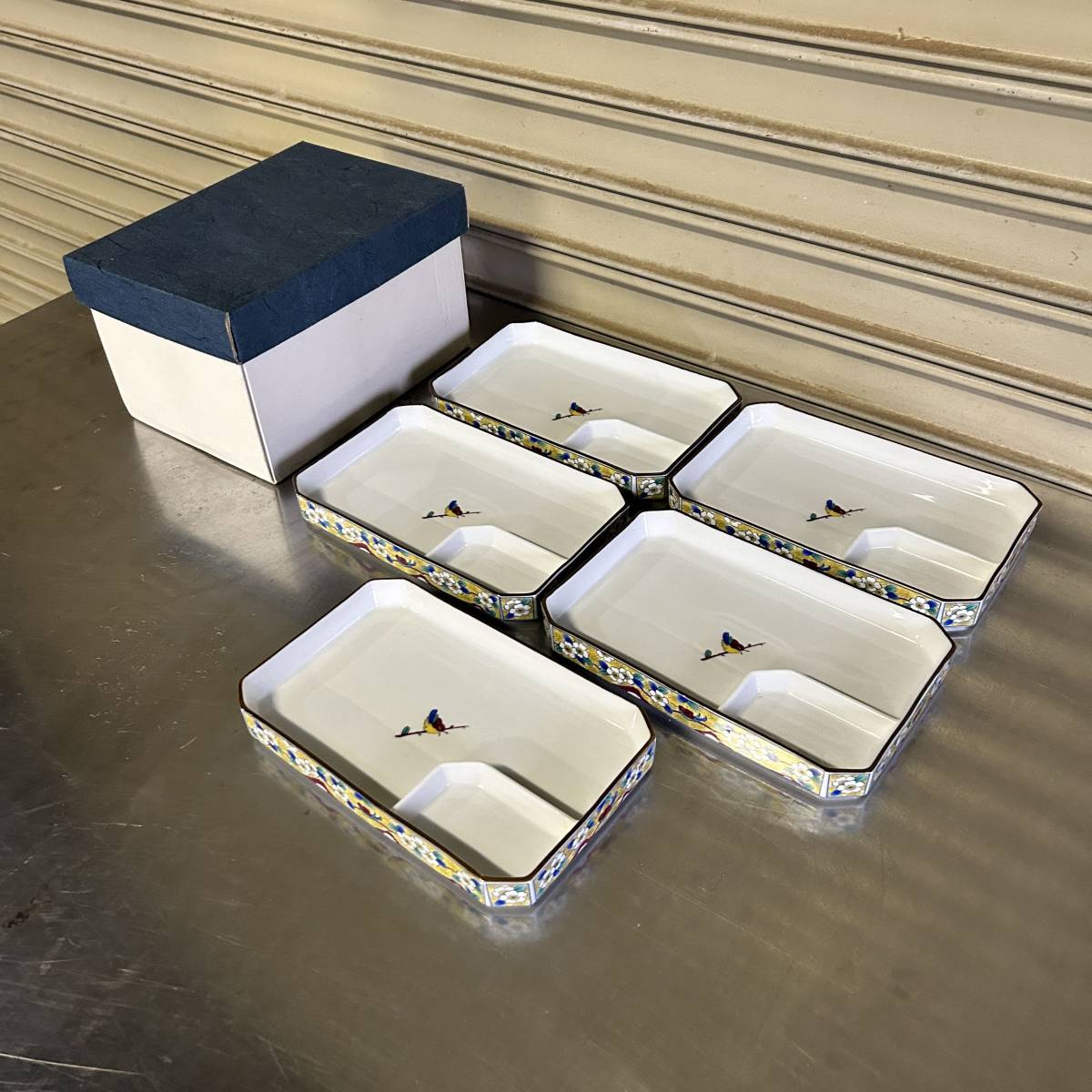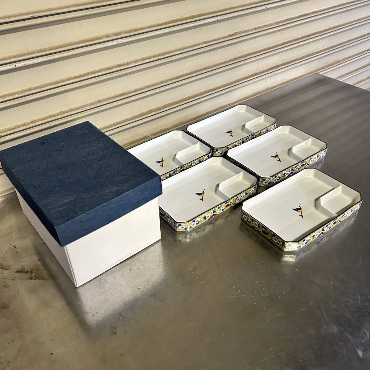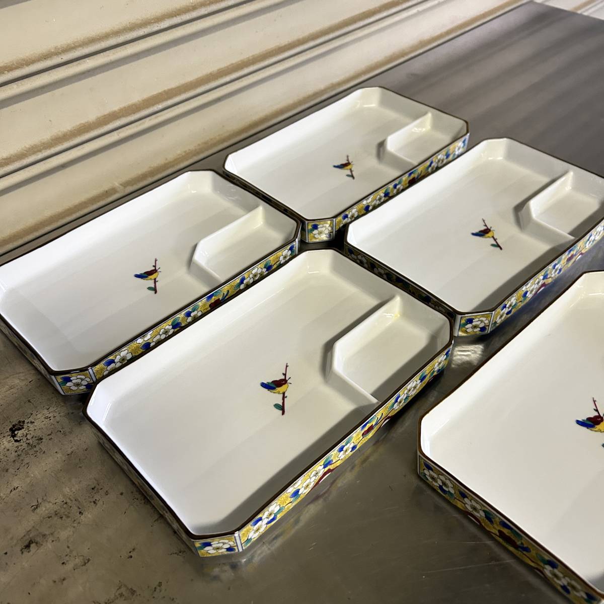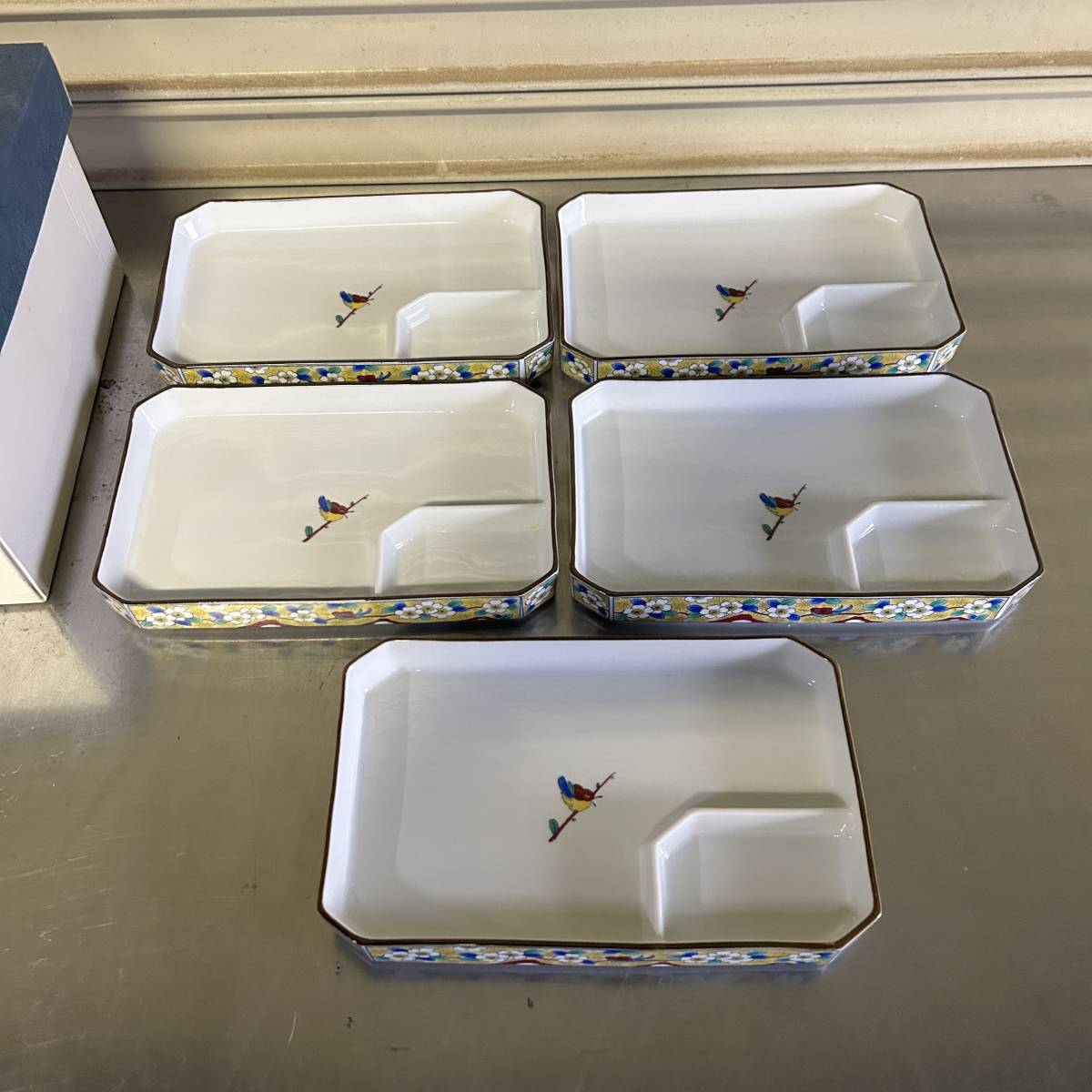 AL13★お皿★ 仕切皿 5枚 色絵彩華花鳥 箱付 食器 調理器具 店舗用 業務用 厨房用