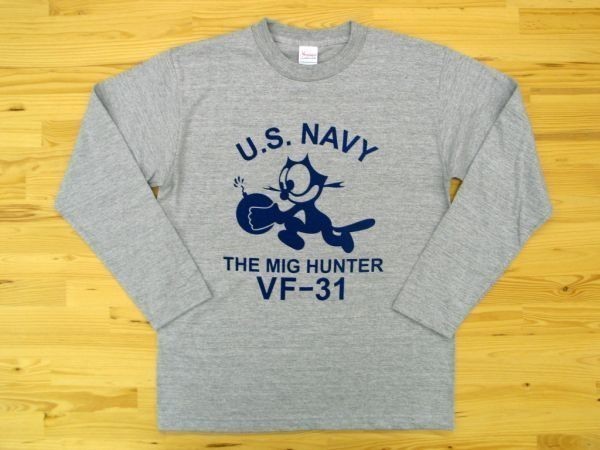 U.S. NAVY VF-31 杢グレー 5.6oz 長袖Tシャツ 紺 S ミリタリー トムキャット VFA-31 USN