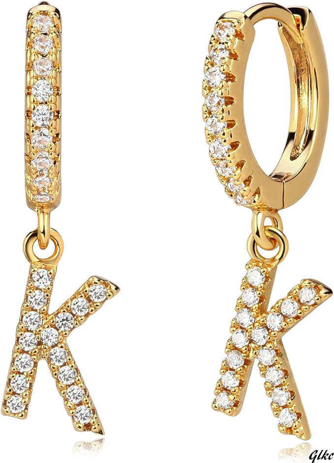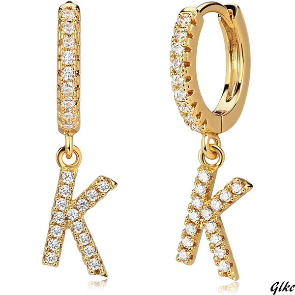 アルファベット文字Kデザインのゴールドドロップピアス1組は、素敵な小箱に入れてお届けします。