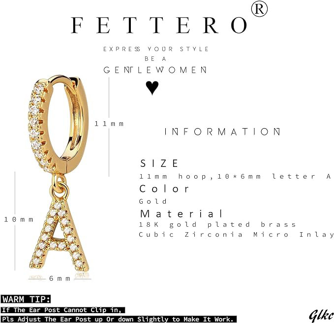 サイズ - 12mmのフープに、6mmx8mmの英文字型ドロップチャーム付き
