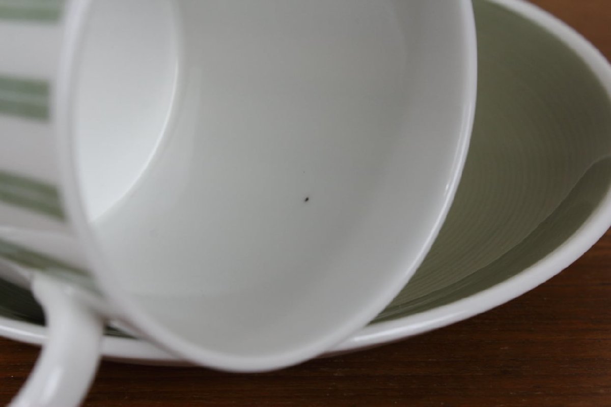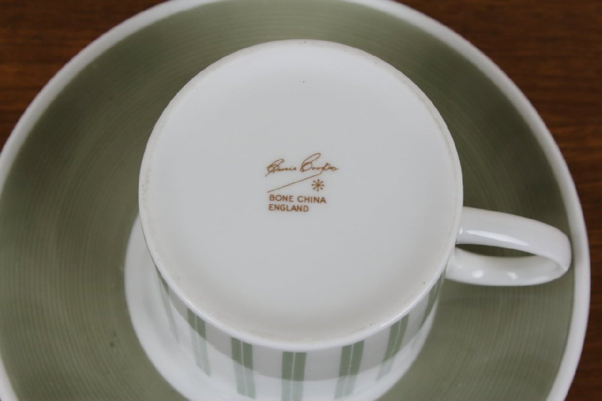 スージークーパー デュオ コーヒーカップ ストライプ グリーン カーキ色 Susie Cooper ヴィンテージ 食器 こ21
