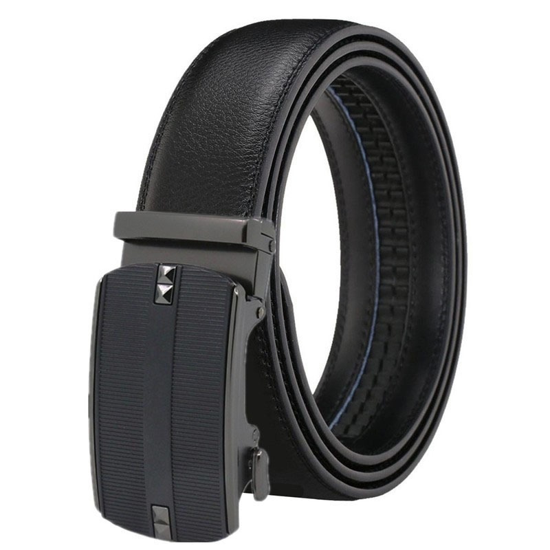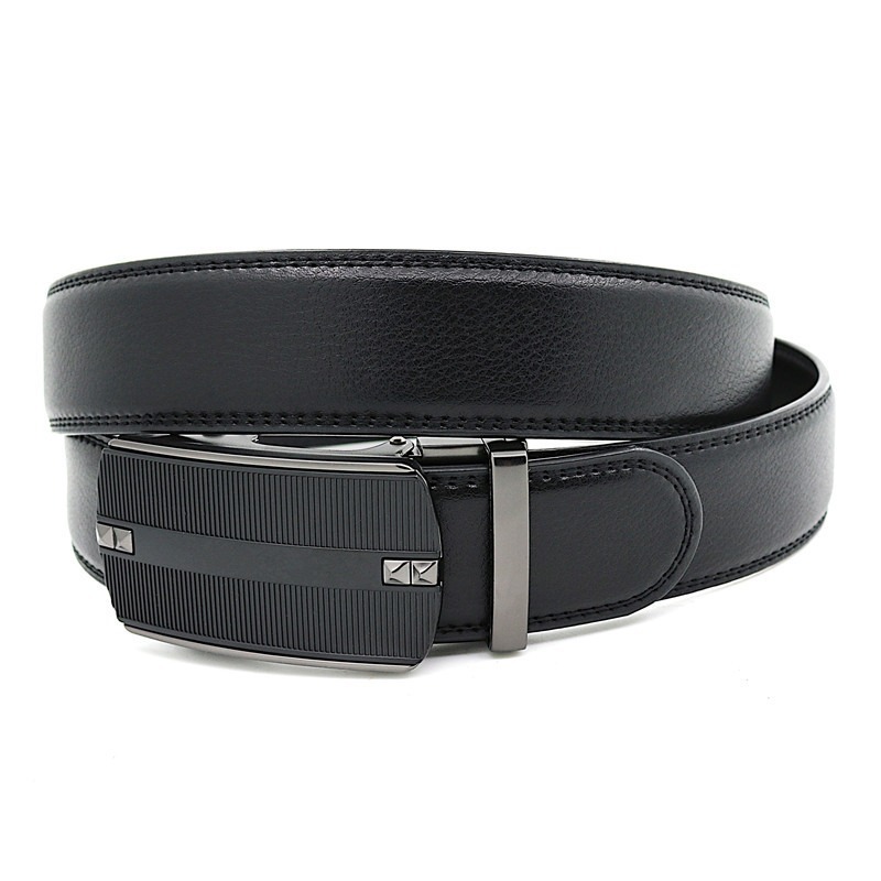 オートロック レザーベルト ◆ ベルト メンズ ブラック 黒 フリーサイズ 新品 人気 未使用 本革 ビジネス バックル カジュアル 【PN228-3】
