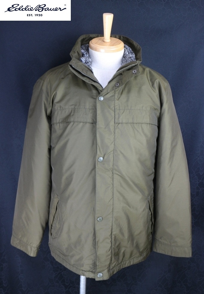 ■超美品■正規品■Eddie Bauer■防寒 ボアライナー脱着 比翼 アウトドア ミリタリー ワーク ジャケット S カーキ エディーバウアー