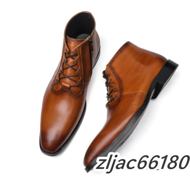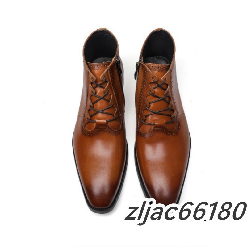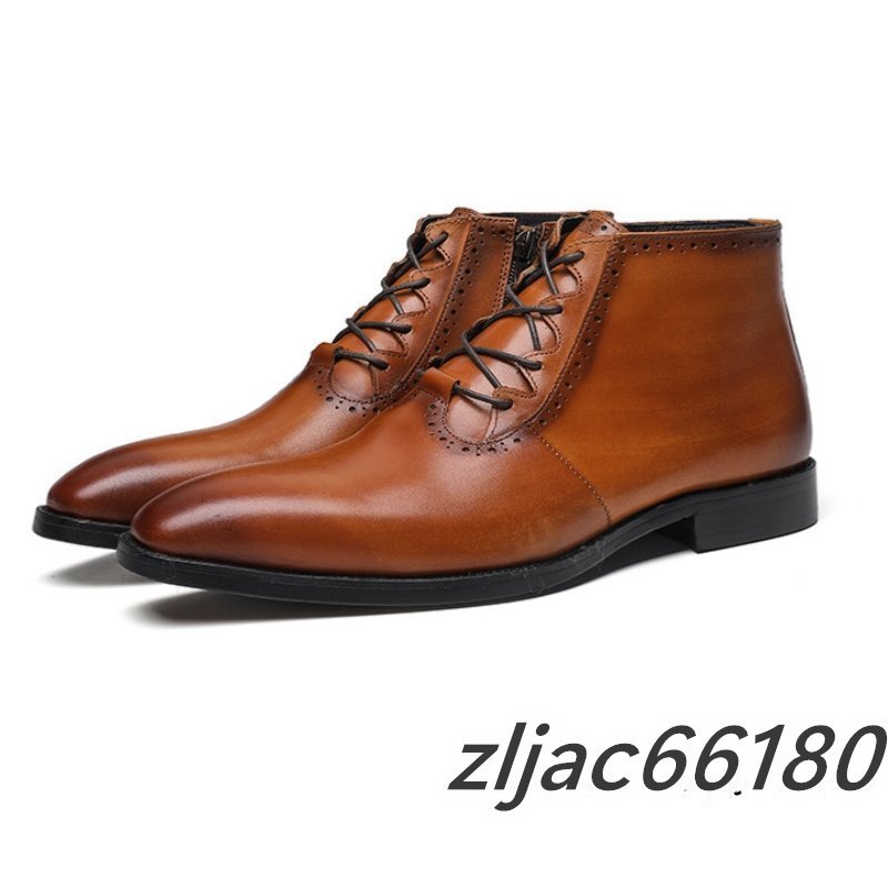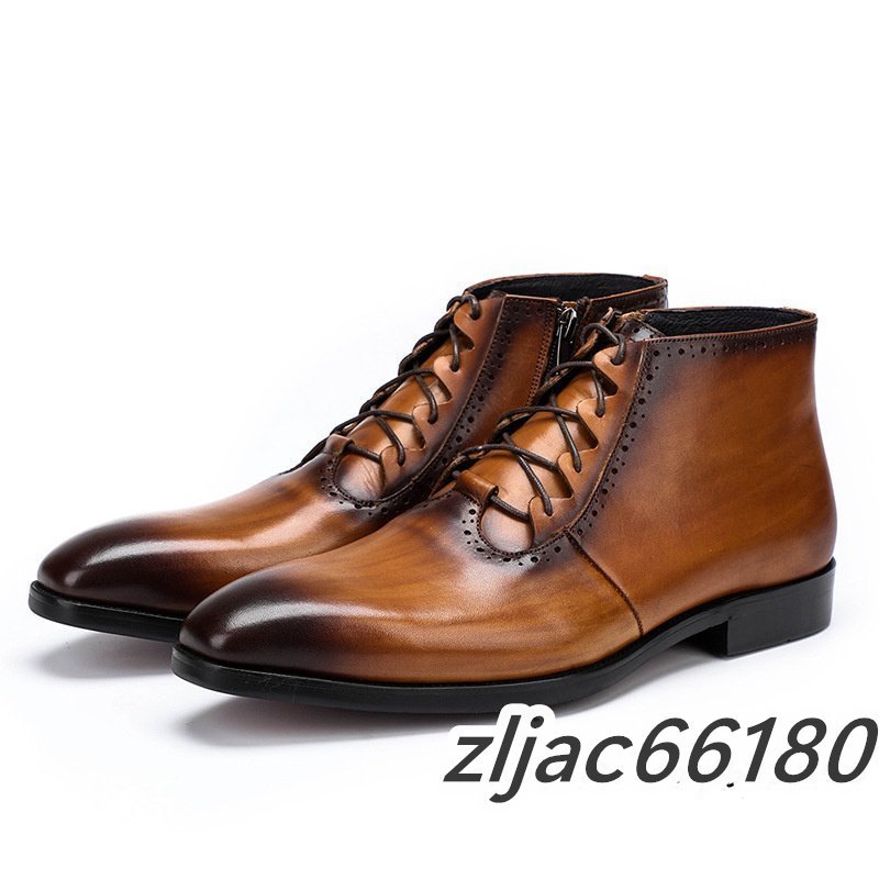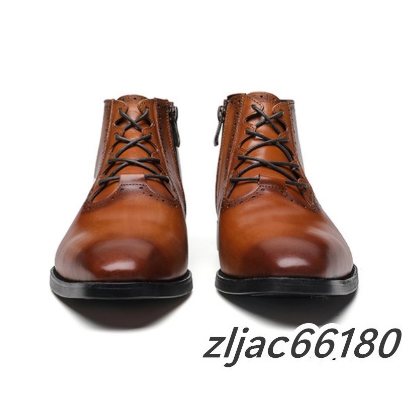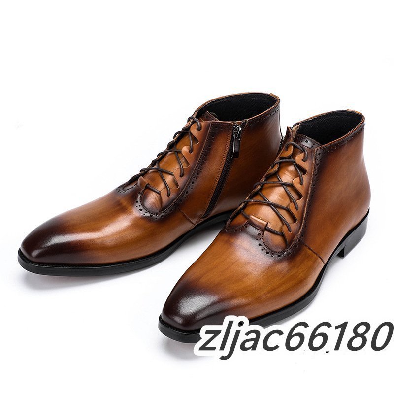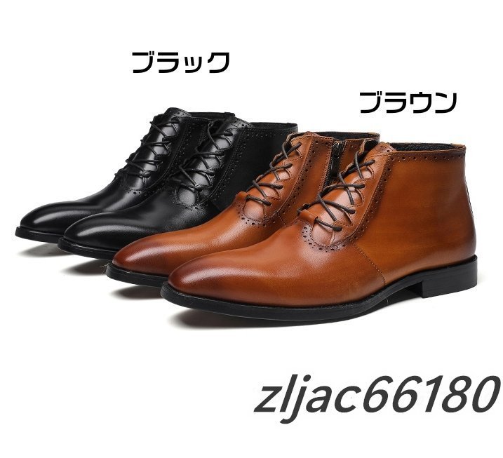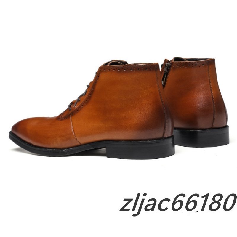 ショートブーツ 本革 メンズブーツ 牛革 マーティンブーツ 紳士靴 レザーシューズ 皮靴 ビジネス 革靴 ブラウン 26.5cm サイズ選択可能