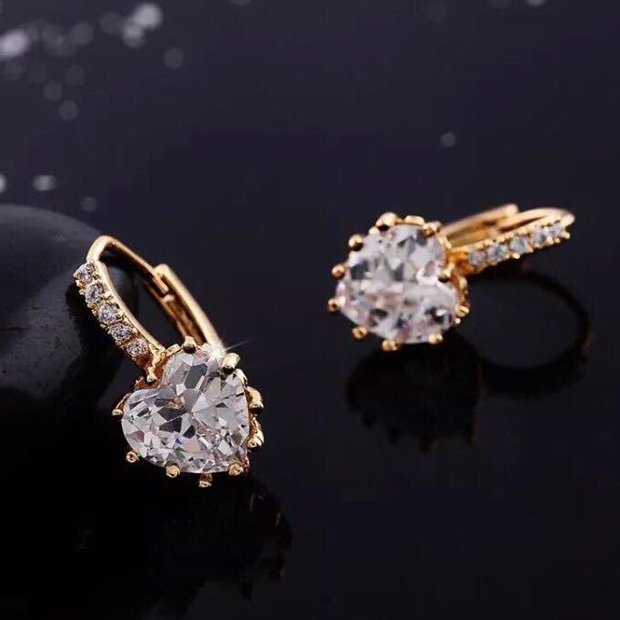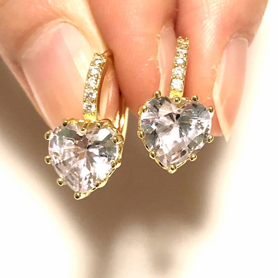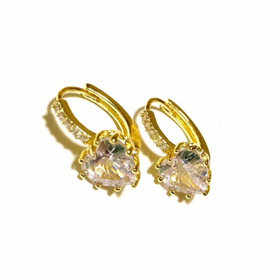 大粒のハートのAAACZダイヤモンドに、小さなCZダイヤをあしらった、華やかなピアスです。
