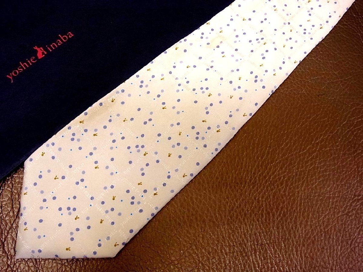 ★並品★4R00513【稲葉 賀恵】ヨシエイナバ「兎 うさぎ 動物 ドット 柄」ネクタイ