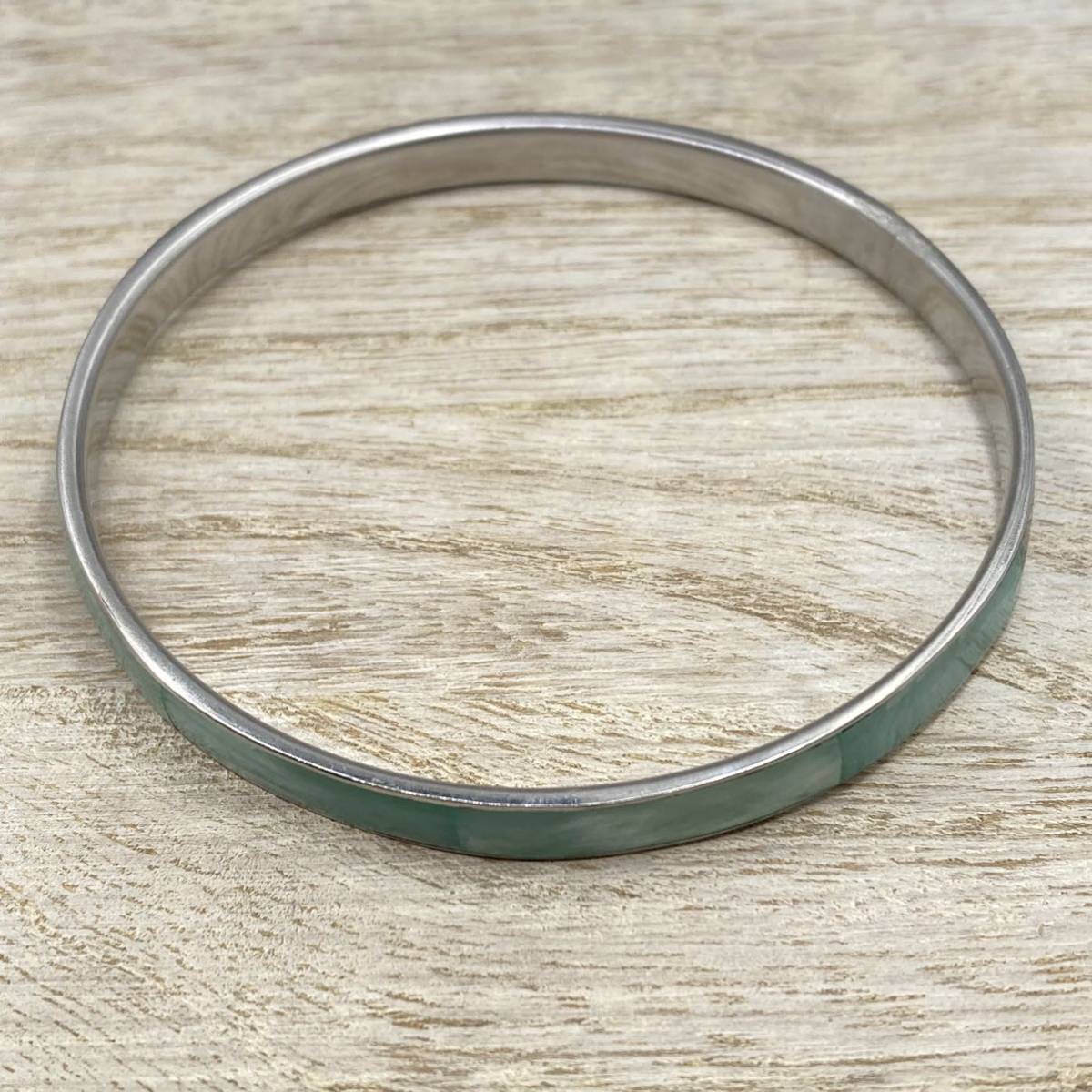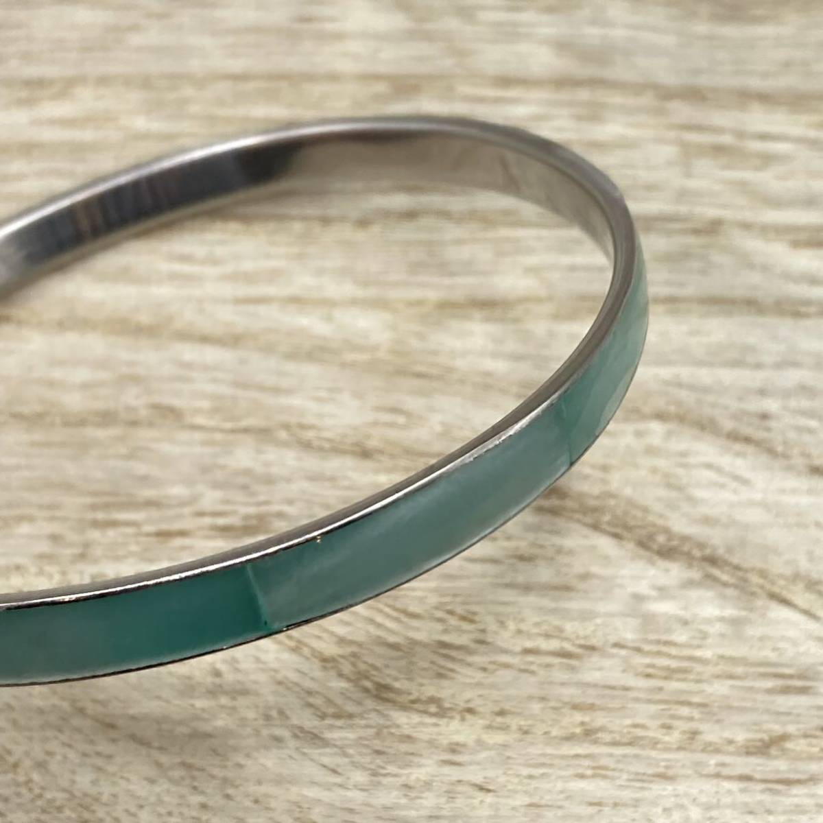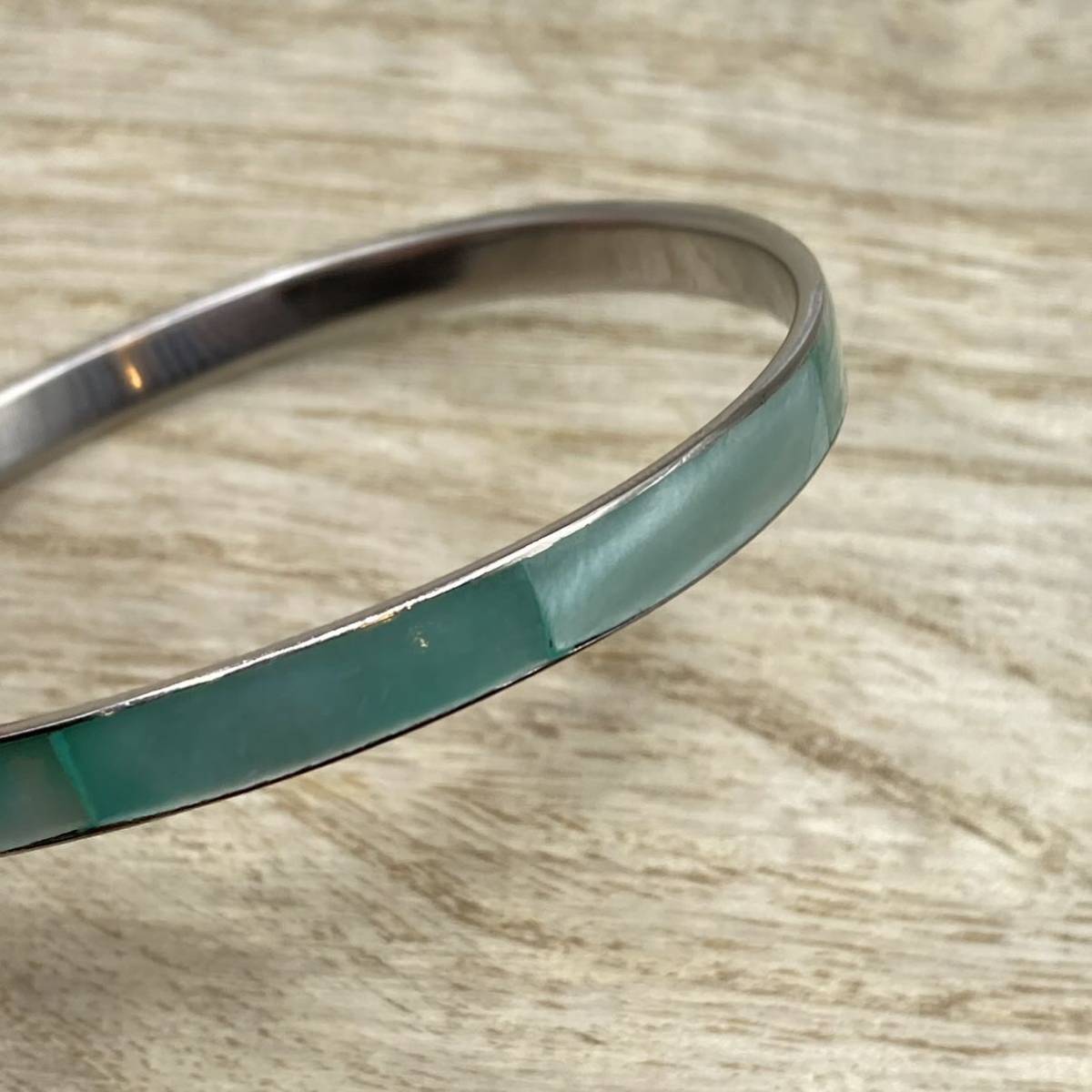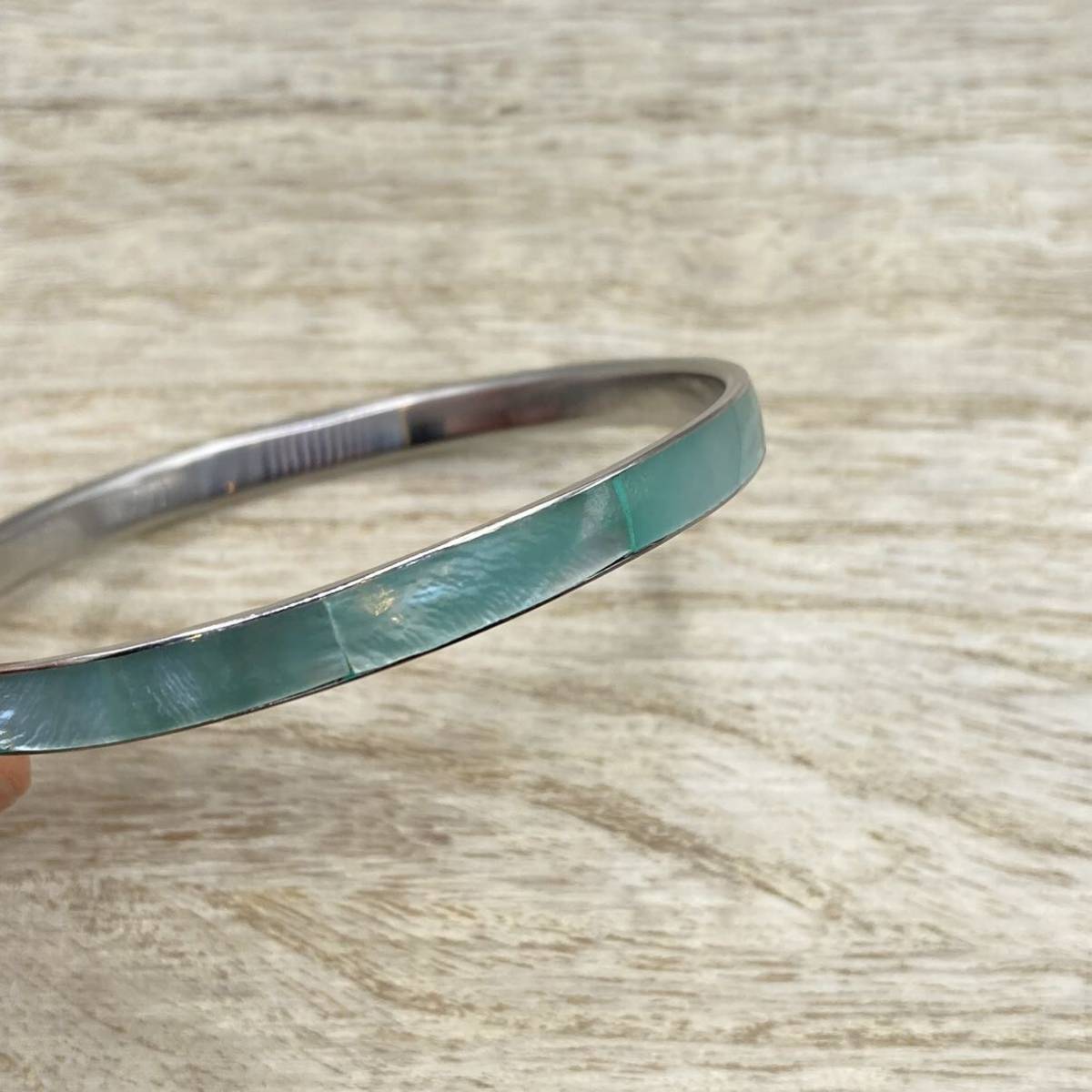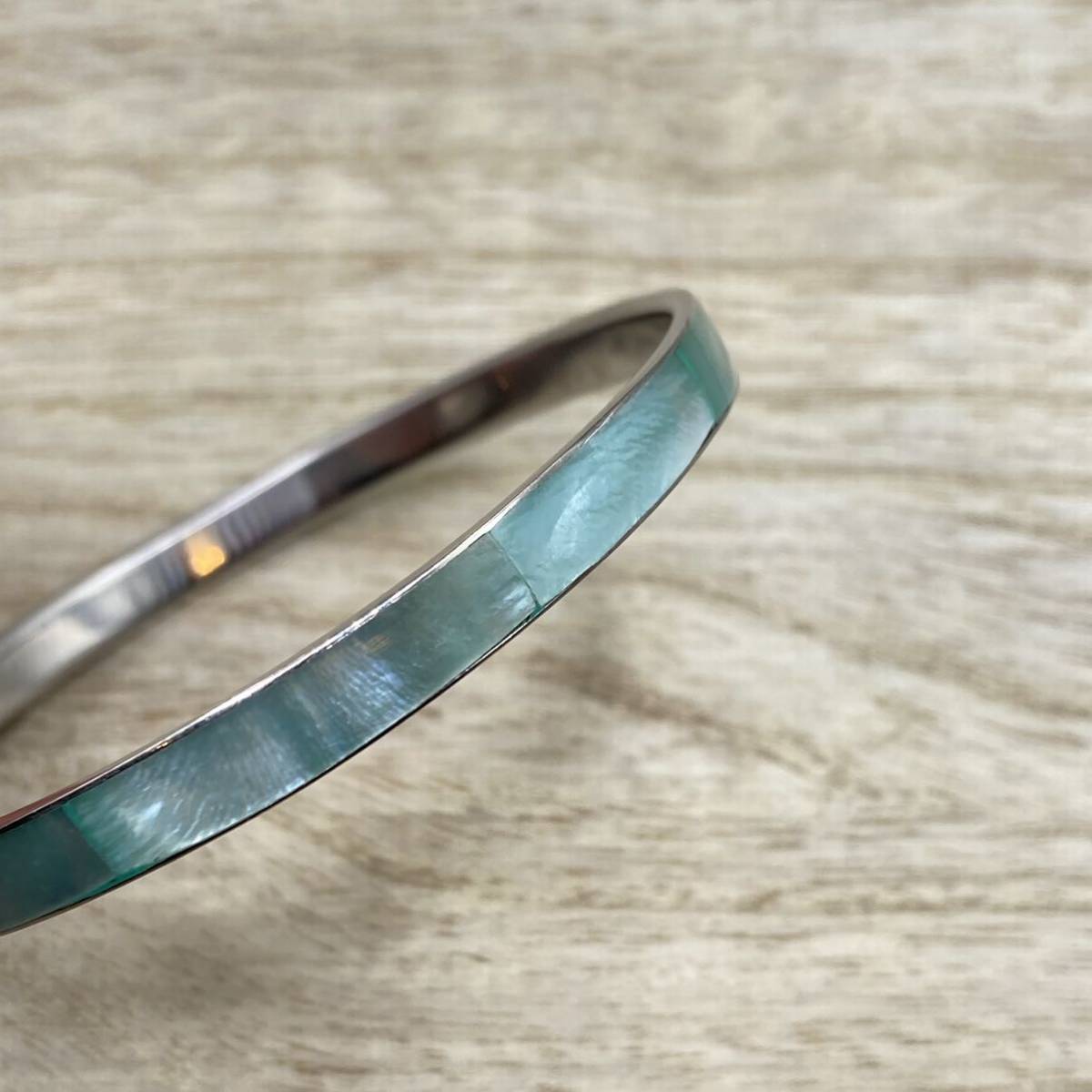 シルバートーンに薄いグリーンカラーの白蝶貝が使用されています。
