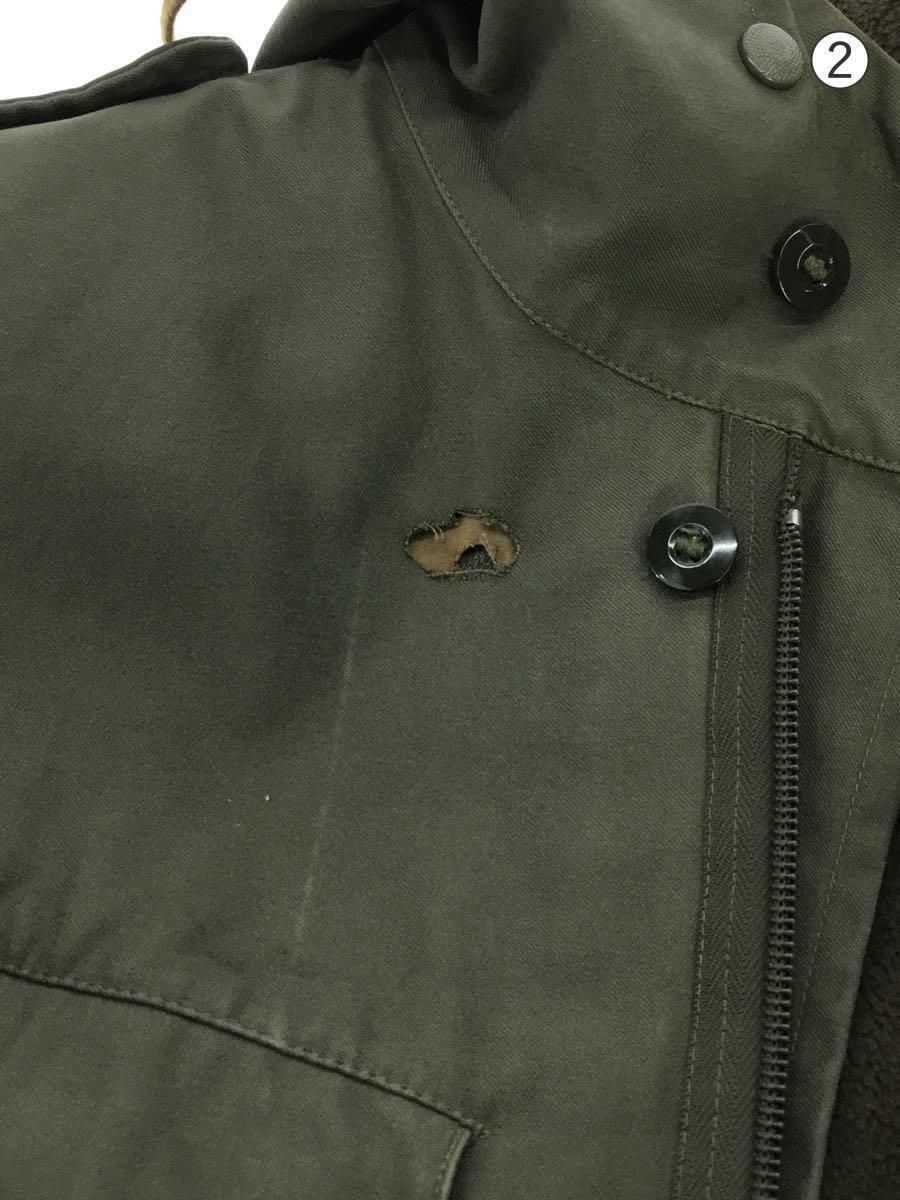 | (1)両手ほつれあり (2)穴あり 袖口、裾、左ポッケにダメージがあります。 右ポッケ、後身頃に汚れがあります。 |