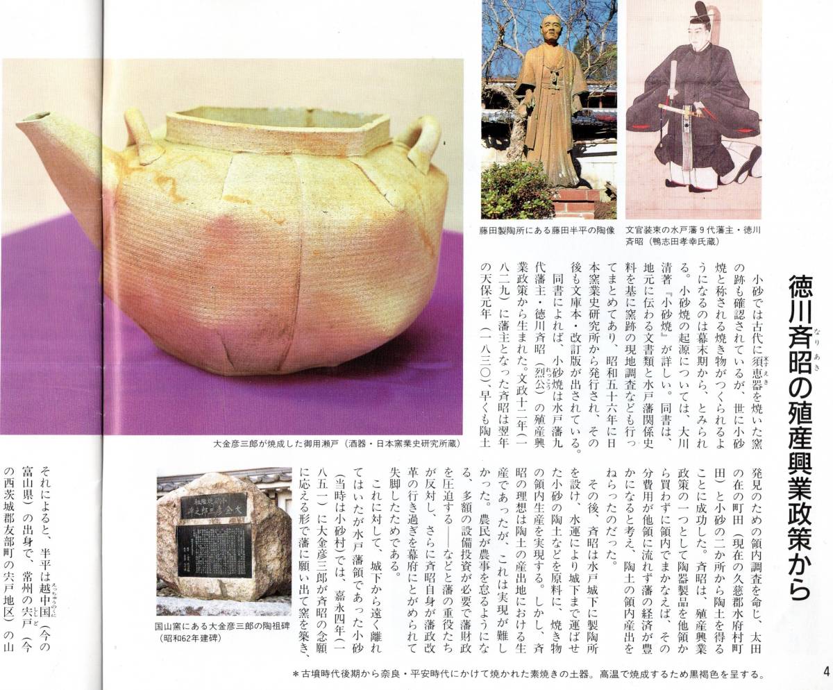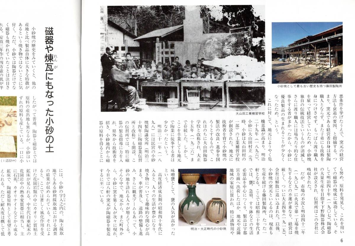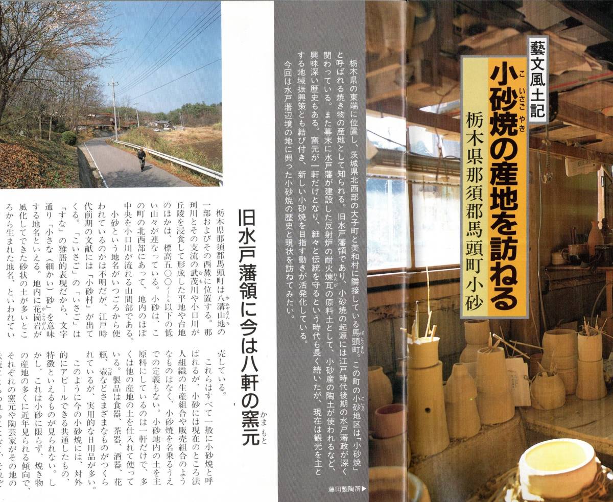 20㎝×21.5㎝大、地元常陽銀行系の会員向け月刊誌で、全20頁のうち10頁にわたり地元ならではの視点から“小砂焼”について紹介しております。(写真版多し)