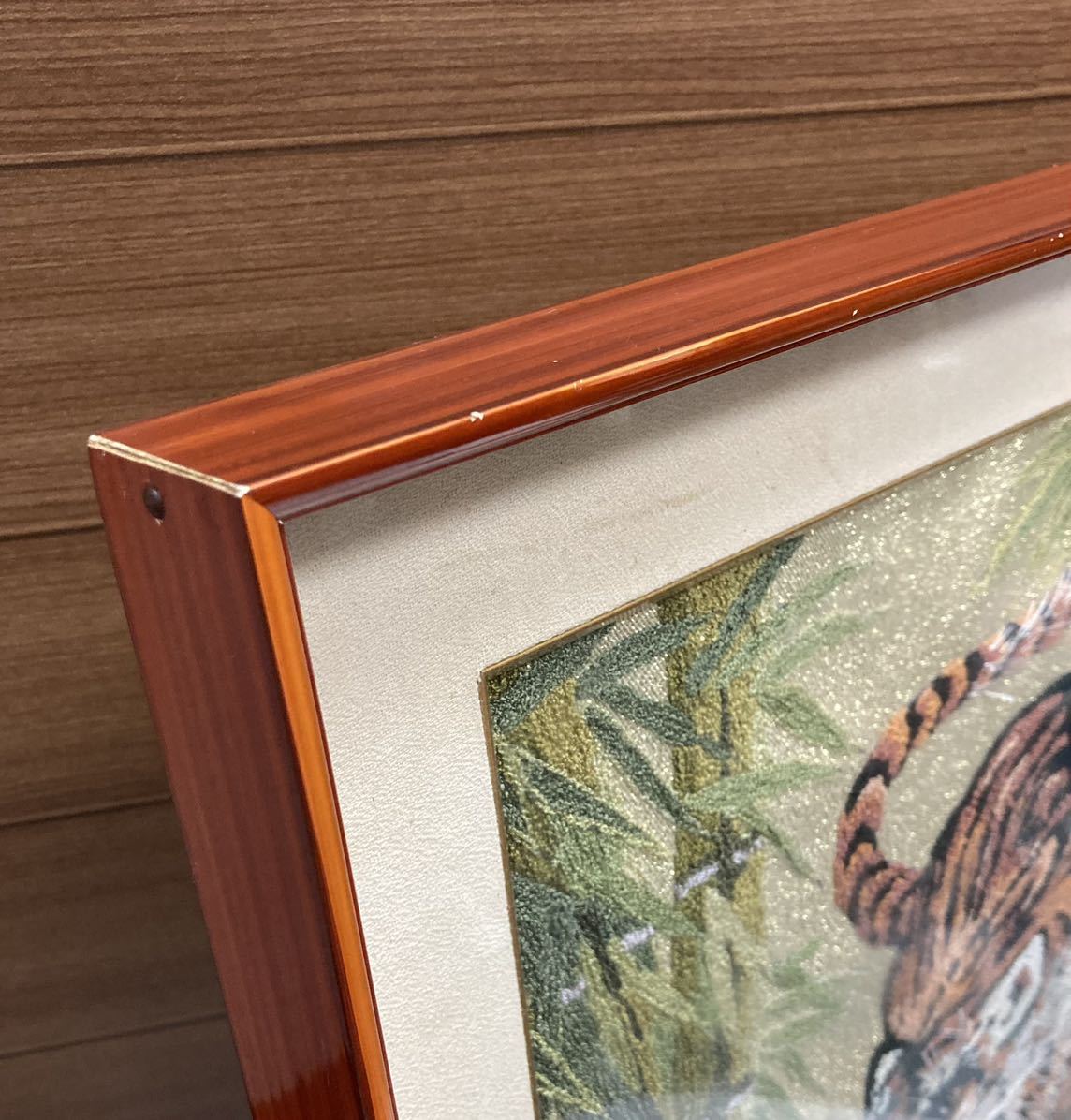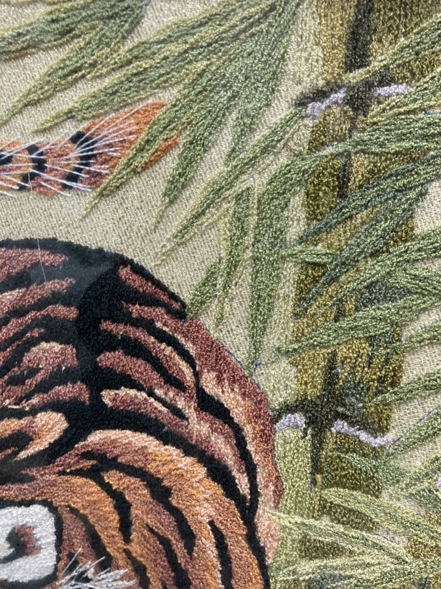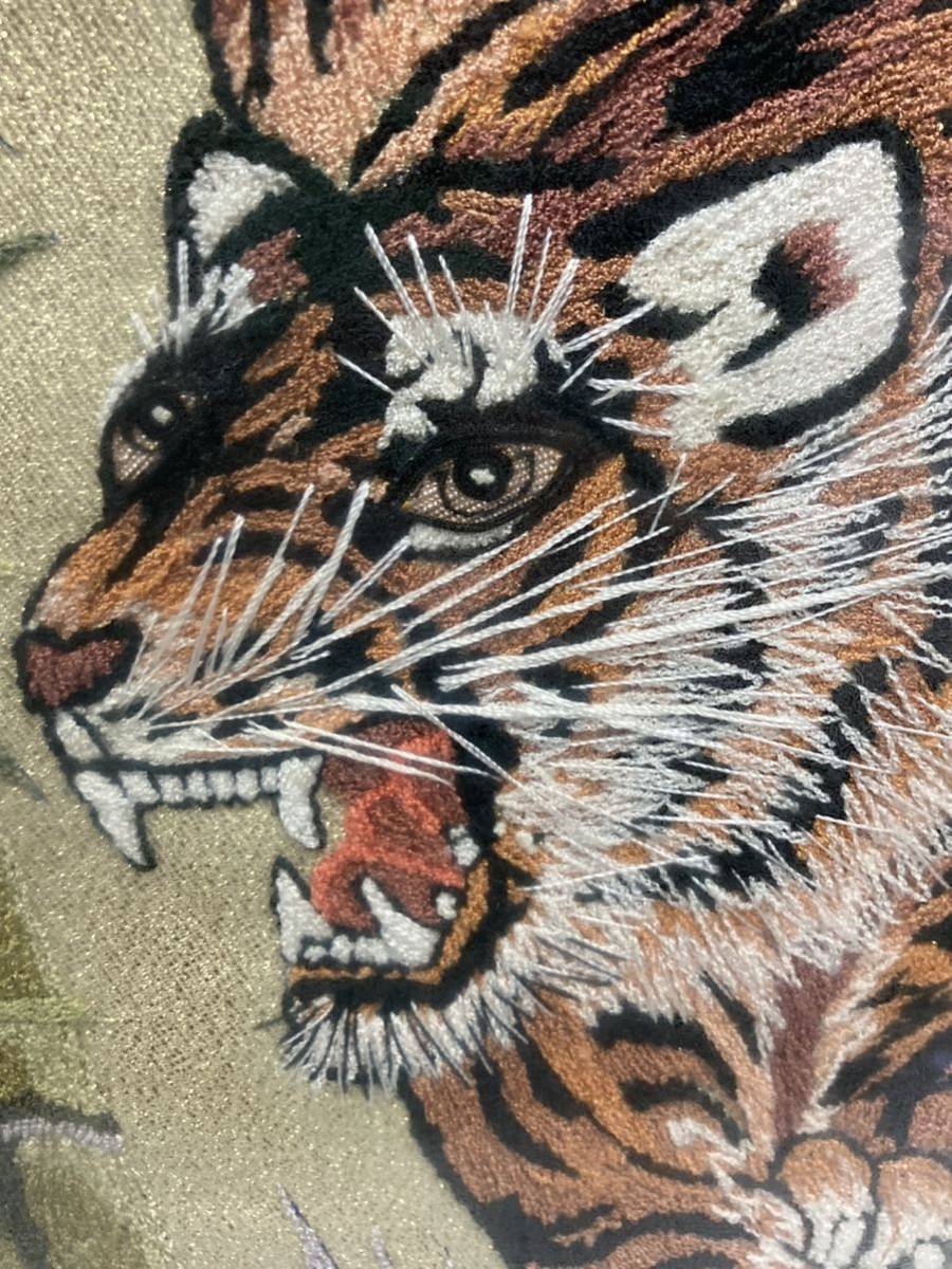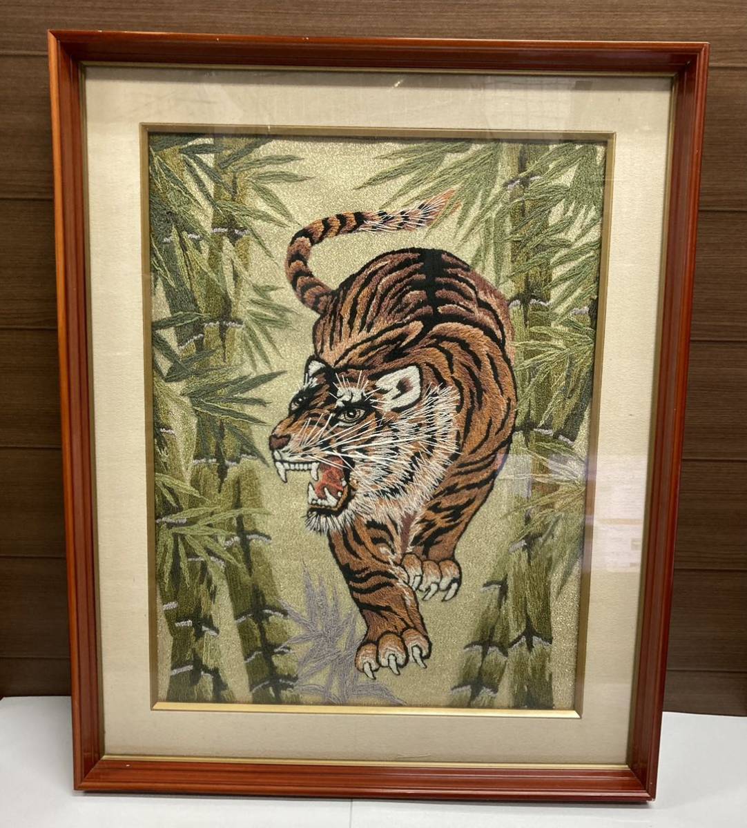 刺繍絵 ♪ 竹やぶの中の虎 寅 トラ タイガー 刺繍 刺しゅう 額入り 絵画 インテリア 約48×59cm 縁起物