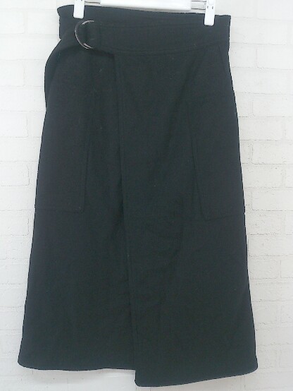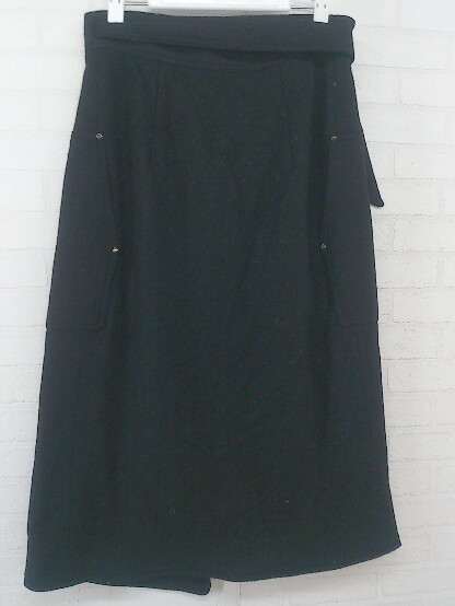 ◇ nano universe ナノ ユニバース ウール混 膝下丈 ラップ巻き スカート サイズ36 ブラック レディース P