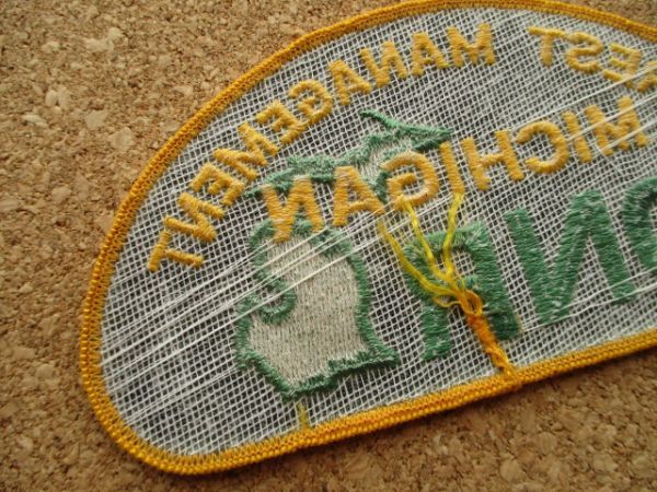 80s ミシガン州自然資源局FOREST MANAGEMENT MICHIGAN DNRワッペン/自然アウトドアpatch森林管理ビンテージ環境保護USA木こりパッチ D16
