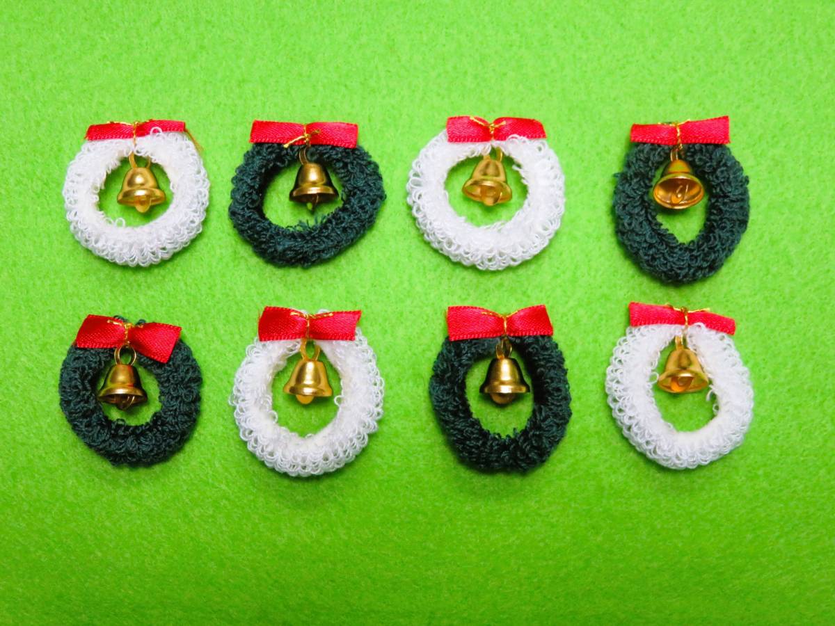 【ニットリース8個】ホワイト&グリーン ☆クリスマスリース☆日本製☆奈良県産☆ ベル ミニチュア 緑 白 みどり しろ ミドリ シロ