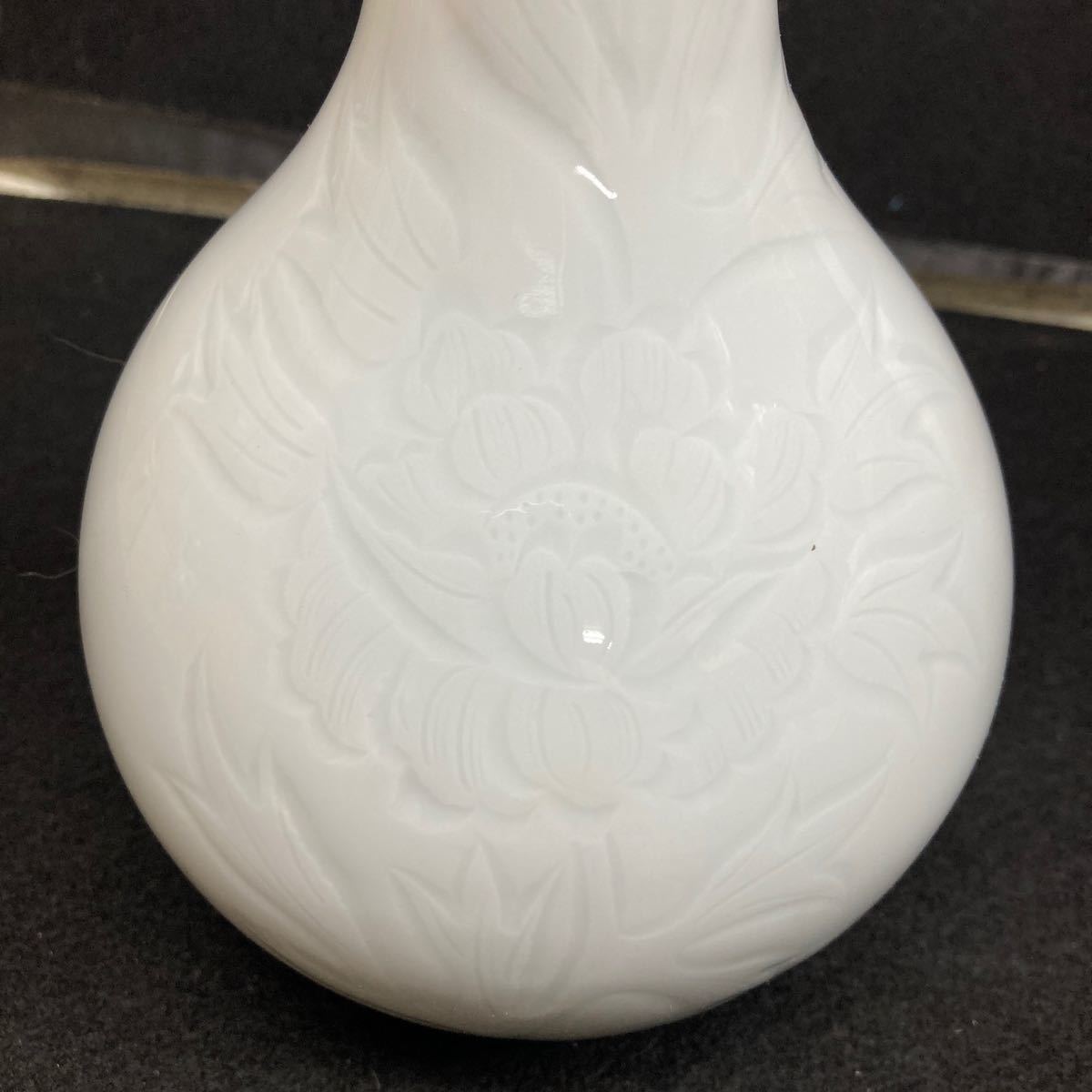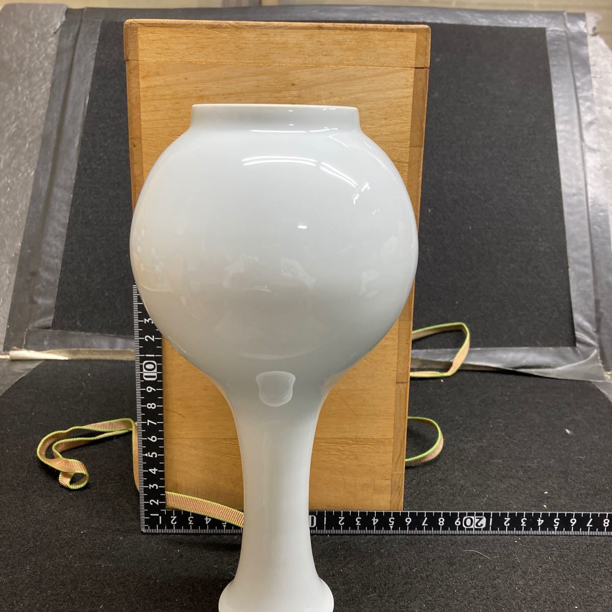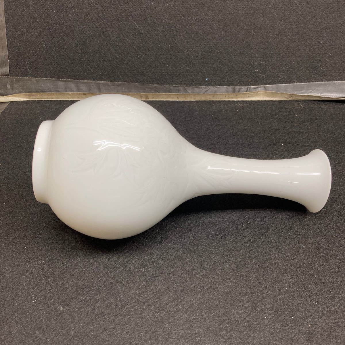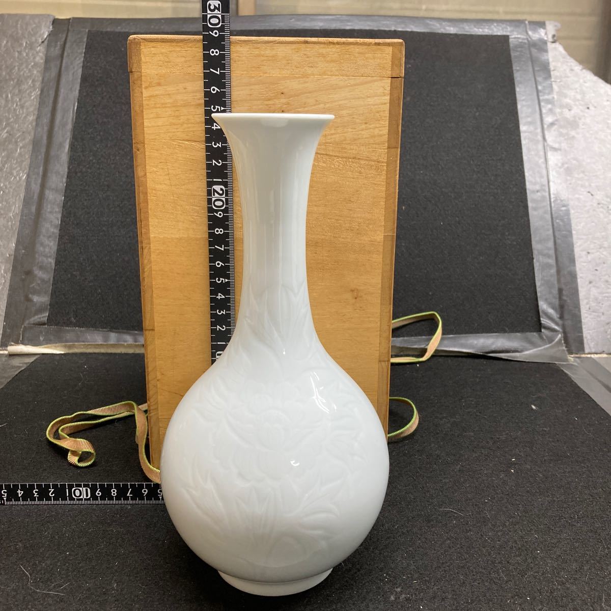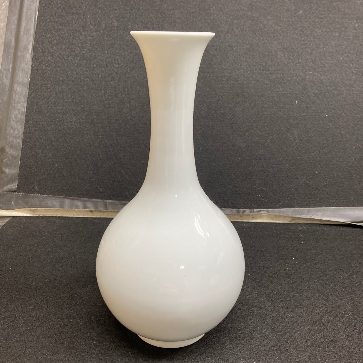 初代 奥川忠右衛門造(物故作家) 白磁 花紋鶴首 花瓶 共箱付き  無形文化財保持者 アンテーク