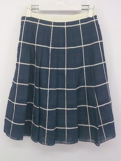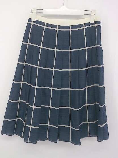 ◇ COMME CA MODELS コムサモデルズ チェック 膝丈 プリーツ スカート サイズM ネイビー レディース P