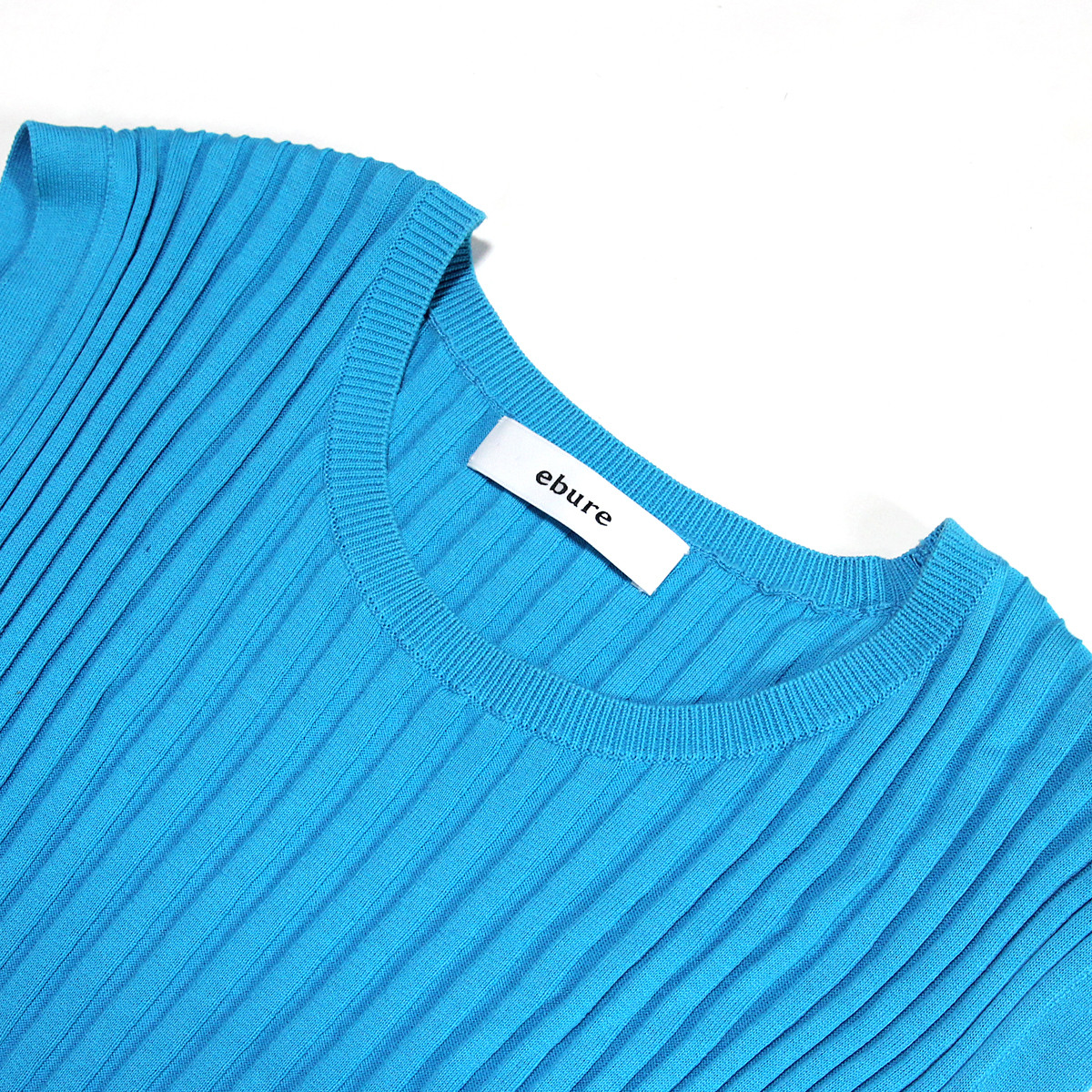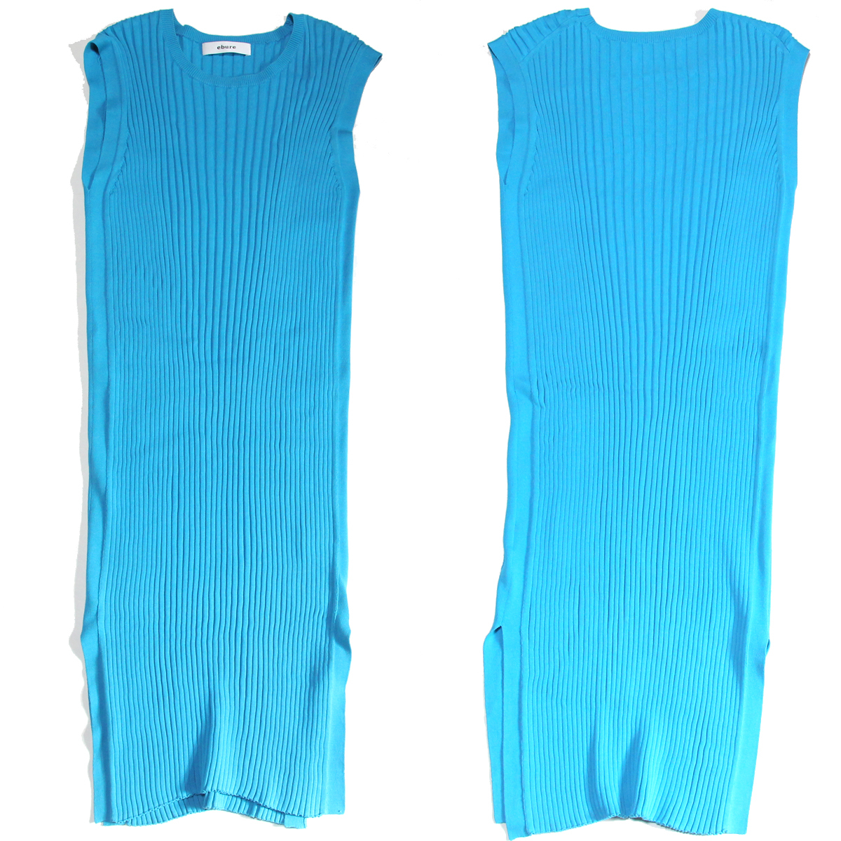 ebure ノースリーブ ワンピース コットン ニット ブルー 水色 エブール プリーツ