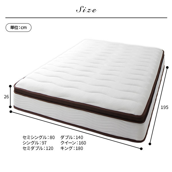 セミダブル:(約)幅120cm×長さ195×高さ26cm