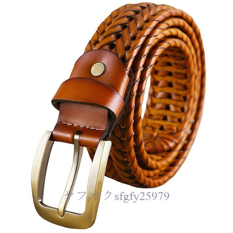 A506C☆新品本革編ベルト男性ファッションベルト高級ウエストストラップカウスキンガードルジーンズブラウンギフト