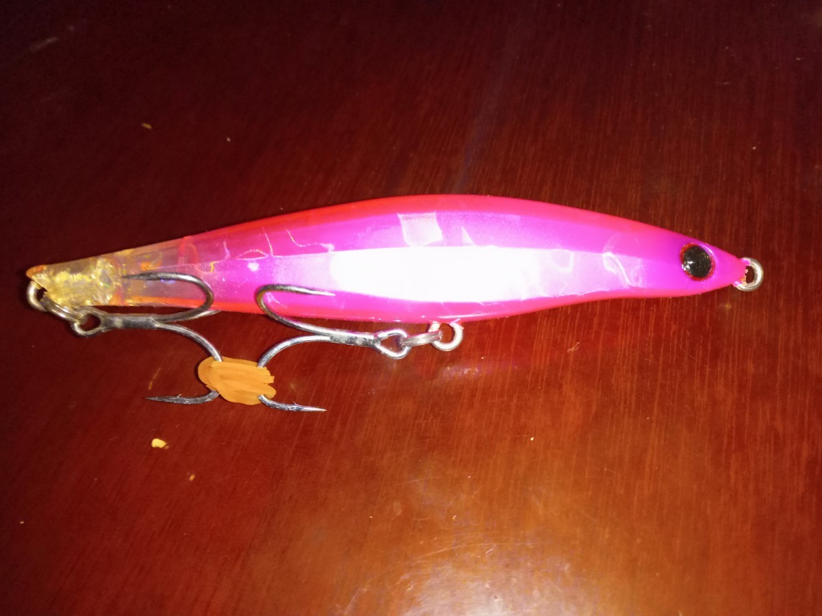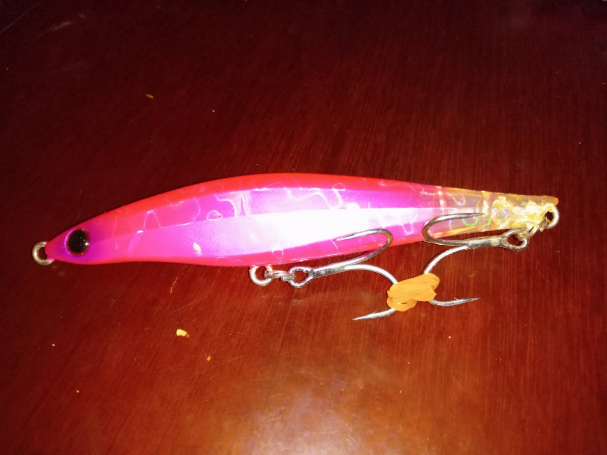 カラーはアンジェルピンクです。未使用ですがタックルボックス保管です。一度ウレタンコーティングしてあります。