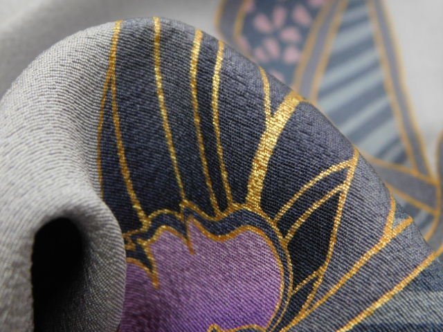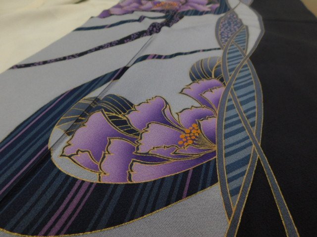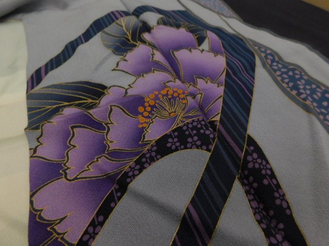 〔楽布特選〕P22187 超モダン グレーと墨色の振袖袷 オークション c