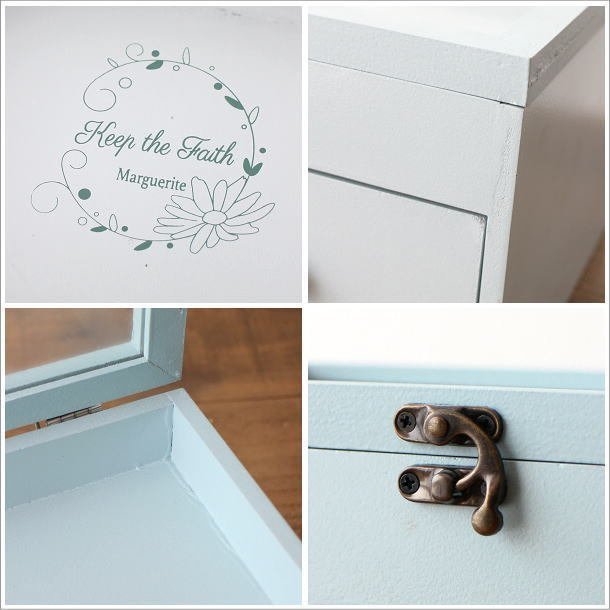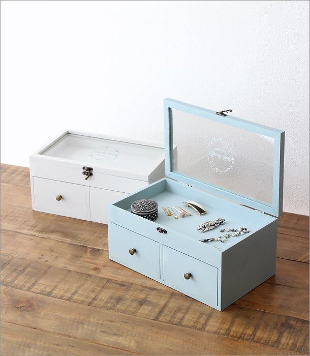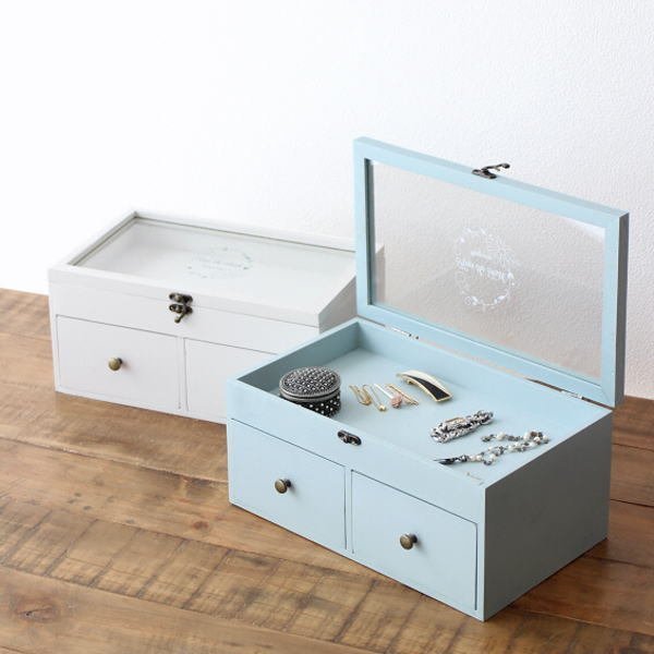 | こちらのページでは【Bカラー】のみの販売です 上品な色合いのボックスに ガラス窓の蓋付きのボックスは アンティークな金古美色の金具と マーガレットモチーフのアクセントが 大人っぽさと可愛さを持ち合わせたデザイン 引き出しが2個付いていて アイテムのサイズに合わせて 効率良く、見やすく収納出来ます お気に入りのアクセサリーを ショップのようにディスプレイすると 朝の準備がいつもより楽しくなりそうです 商品名 : 引き出し付きクリアケース 商品番号 : hbr1662 全体のサイズ(cm) : 幅33×奥行20×高さ15.5 上部収納部サイズ : 幅31×奥行18.5×深さ3 引き出し内寸 : 幅13.5×奥行18×深さ8.5 材質 : MDF 合板 ウッド ガラス アイアン 重量 : 2.5kg 生産国 : 中国 ※手作り品の為、サイズ等に個体差があります ※商品の特性上、ガラスの傷、塗装ムラや小傷、欠け、隙間等はご容赦ください |