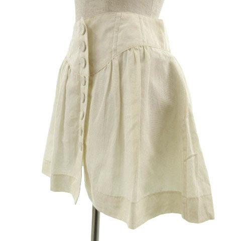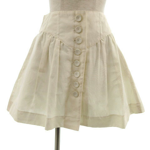 未使用品 ジルスチュアート JILL STUART スカート ボタンダウン フレア ひざ丈 シルク混 日本製 アイボリー 0 レディース