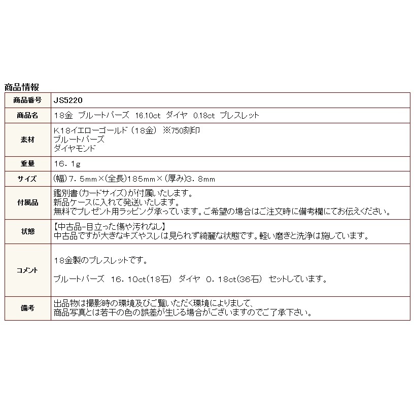 | 付属品 | 鑑別書(カードサイズ)が付属いたします。 新品ケースに入れて発送いたします。 無料でプレゼント用ラッピング承っています。ご希望の場合はご注文時に備考欄にてお伝えください。 |