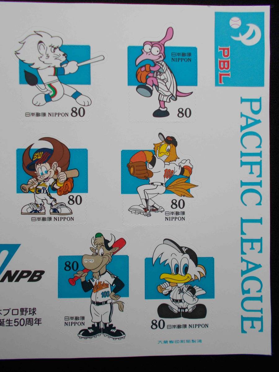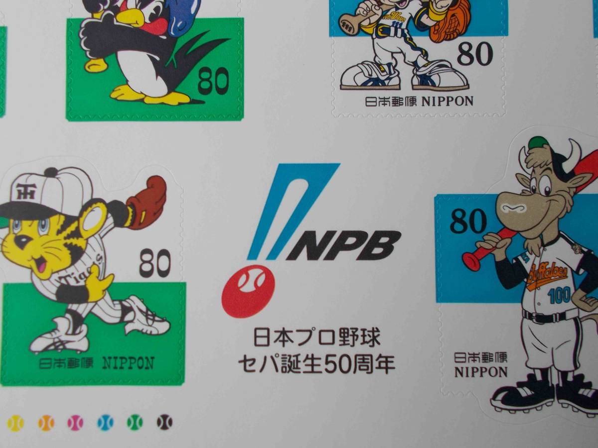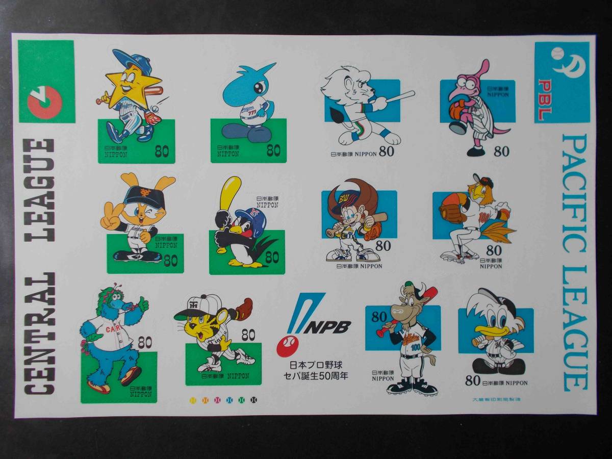 日本プロ野球セパ誕生50周年 記念切手 1シート 未使用 PBL 1999年