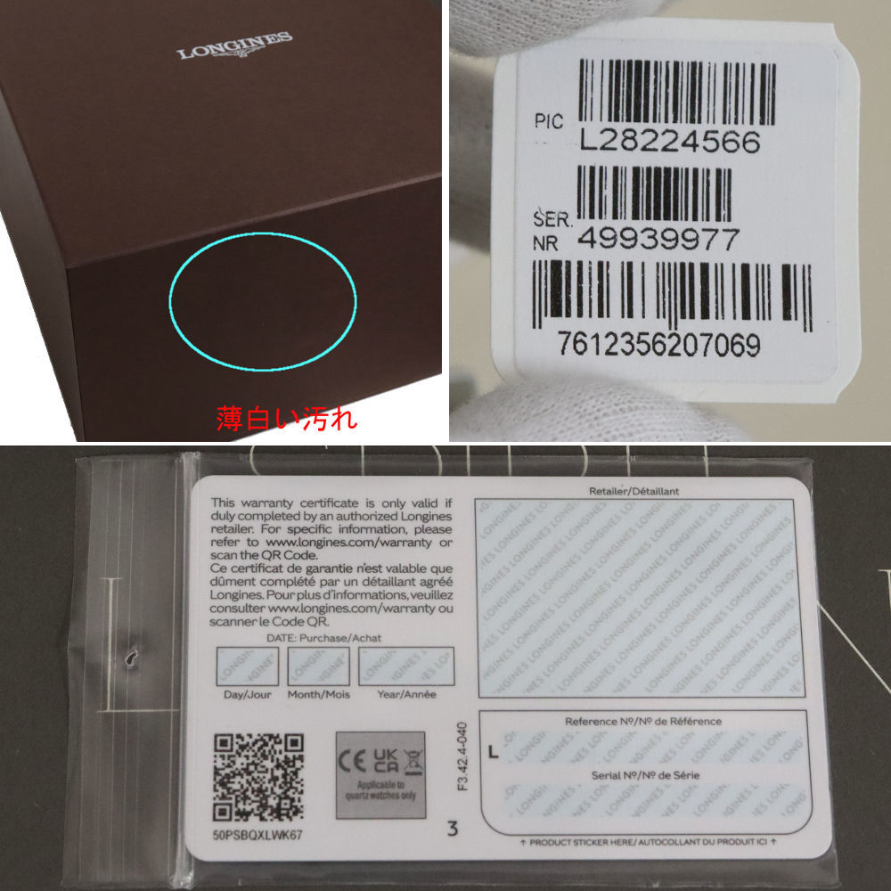 ロンジンのメンズウォッチ、ヘリテージスキンダイバー(L2.822.4.56.6)の未使用品です。 未使用品ですが、ケースに展示していた際についた小さな傷があります。 裏蓋やベルトの一部に保護テープが貼られております。 付属品は以下の通りです 内外箱(汚れがあります) 保証書(未記入) 取扱説明書