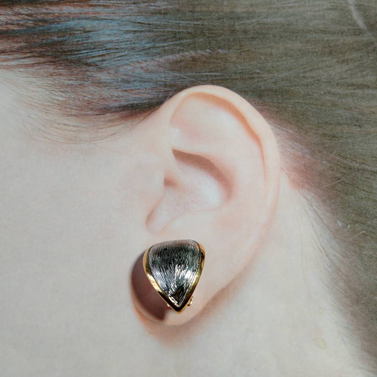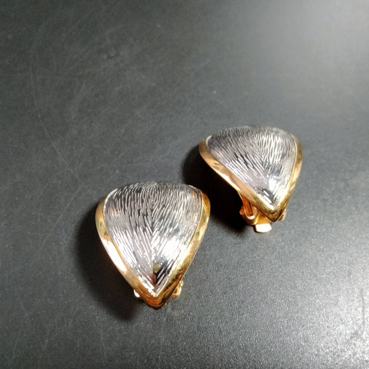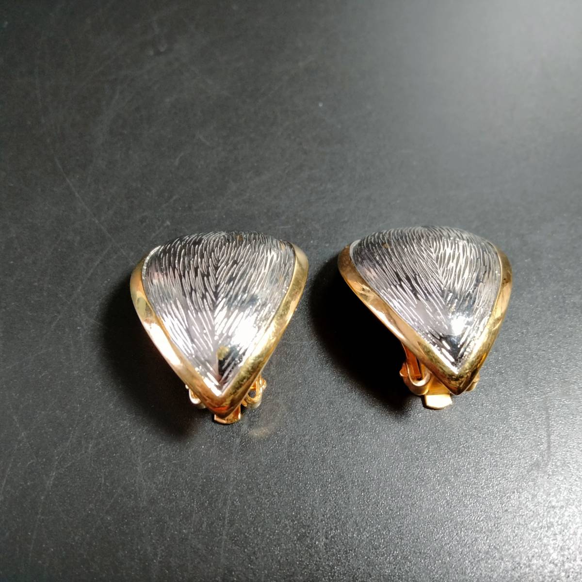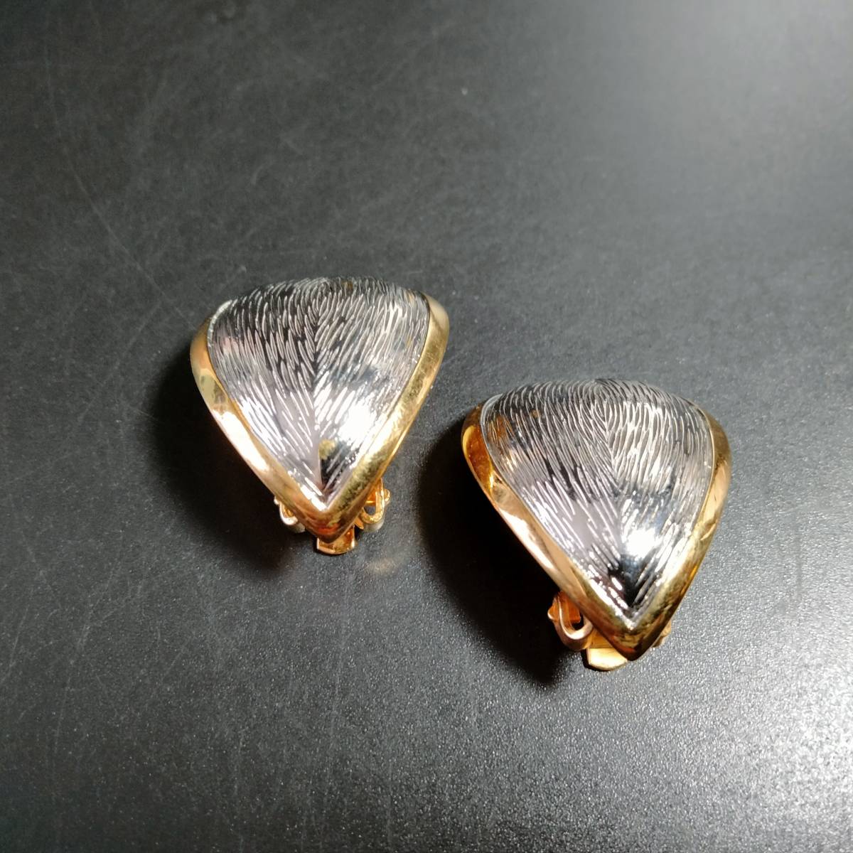 ビンテージ ピアス リーフ カーブ シルバー イヤリング ゴールドトーン アールデコ 昭和レトロ コスチューム ジュエリー SFNE10