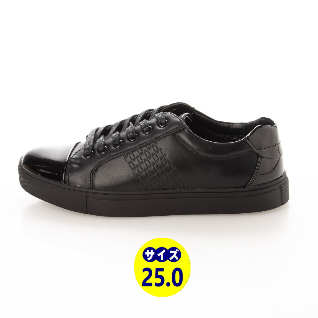 新品、訳あり商品、送料無料!『21108-BLK-250』 男女兼用・スムース&エナメル2トーンデッキシューズ・スニーカー |