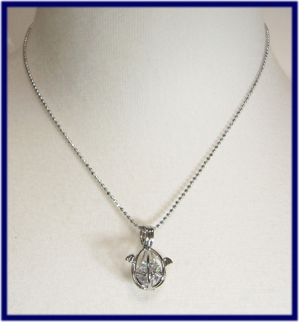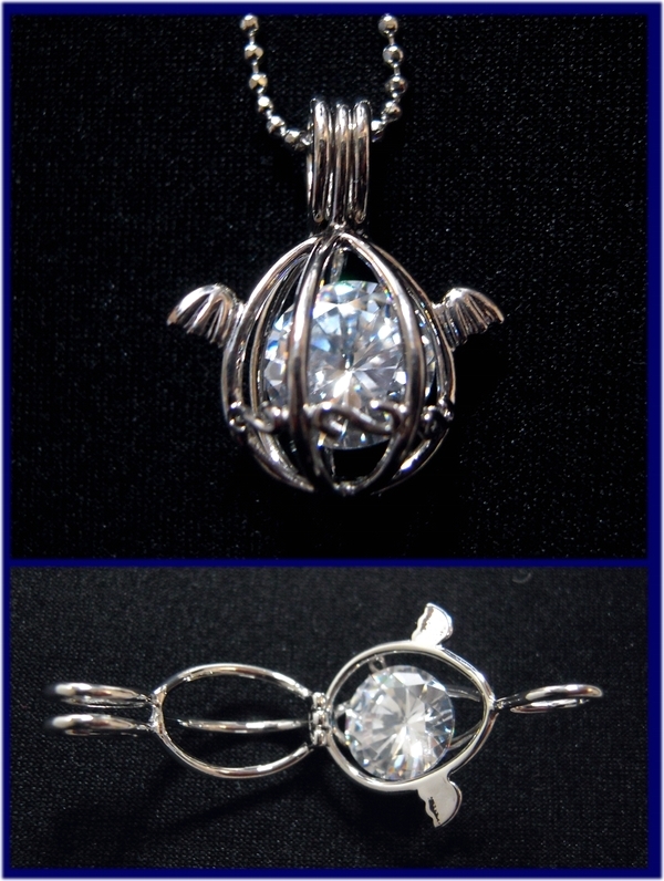 N6062/天使の卵 羽たまごネックレス 上質大粒10mmキュービックジルコニアダイヤペンダント 閉開 かご エンジェルウィング ケージ ギフトに