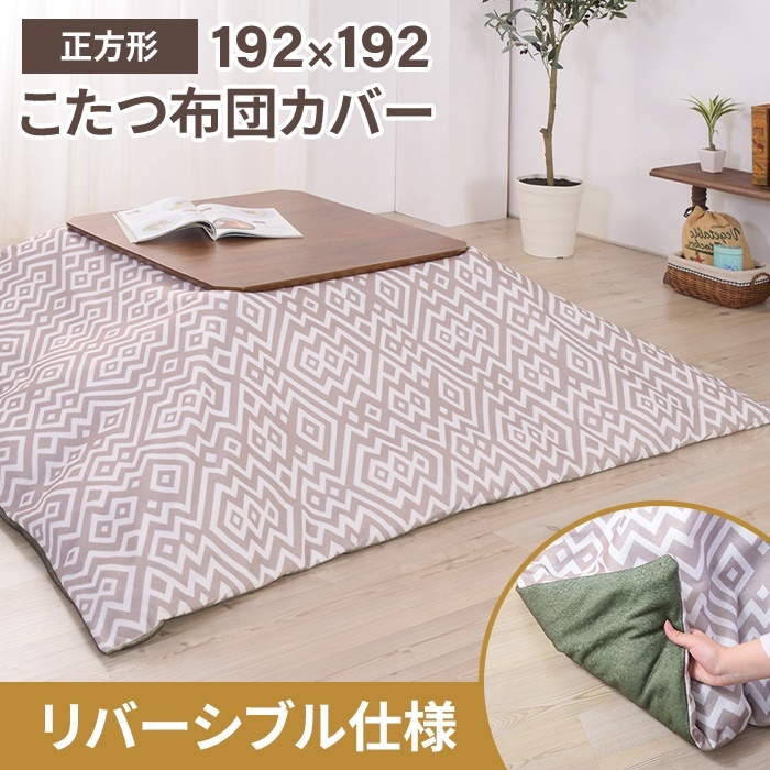 | リバーシブル コタツ布団カバー 正方形 幅192 奥行192cm インテリア こたつ こたつ布団 190cm×190cm 2WAY おしゃれ 無地 シンプル |