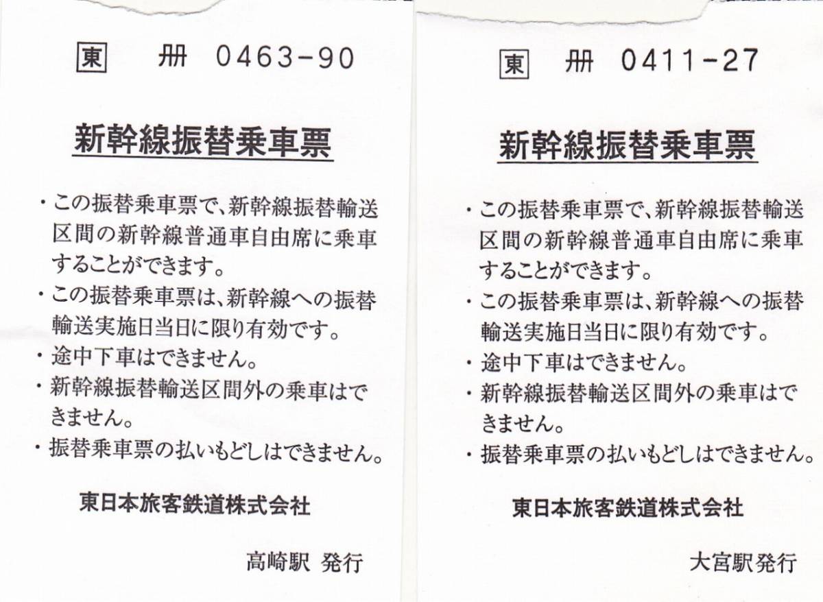 【JR東日本】新幹線振替乗車票 大宮駅・高崎駅発行 2種