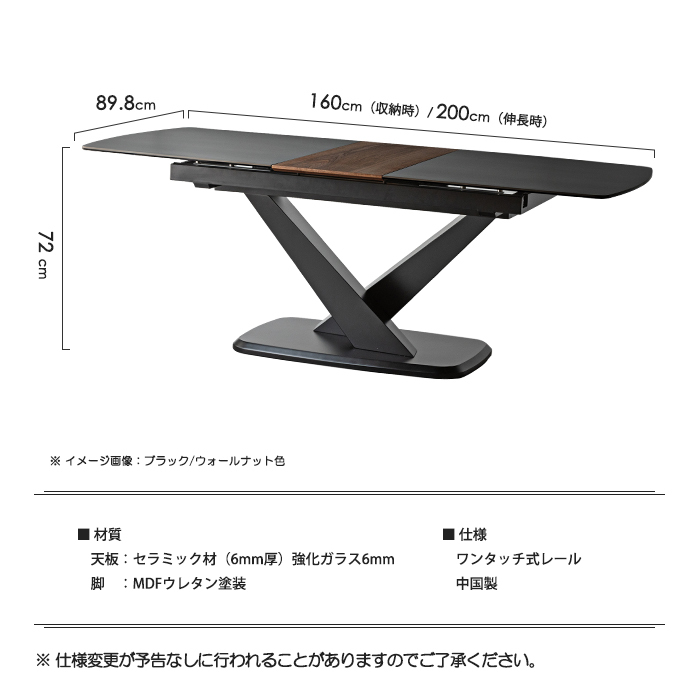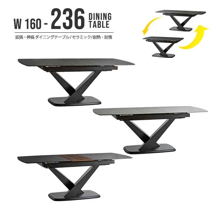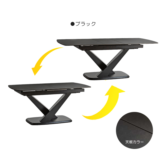 伸長ダイニングテーブル 幅160cm 幅200cm セラミック天板 伸長式 伸張式 拡張式 テーブル 天板 4人掛け ブラック