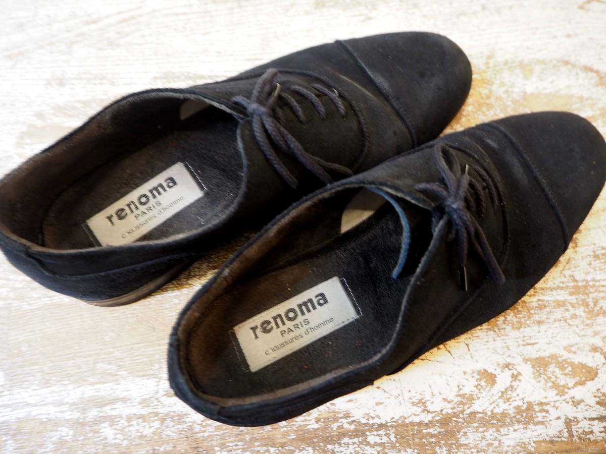 ◆renoma paris(レノマ)ヌバック ドレス シューズ ストレート チップ ブラック 24.5㎝ ジャケパン アイビー トラッド◆