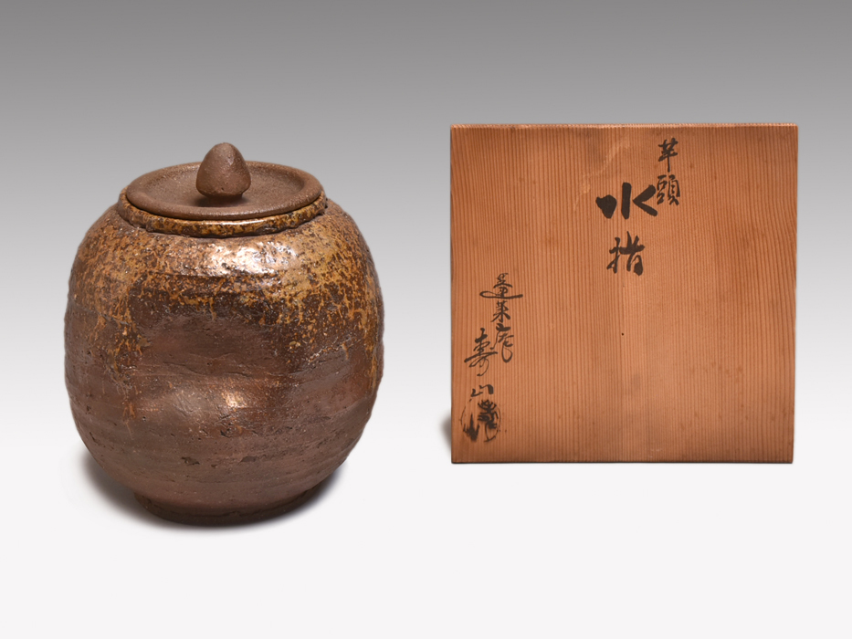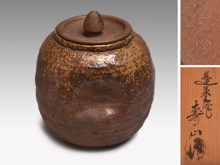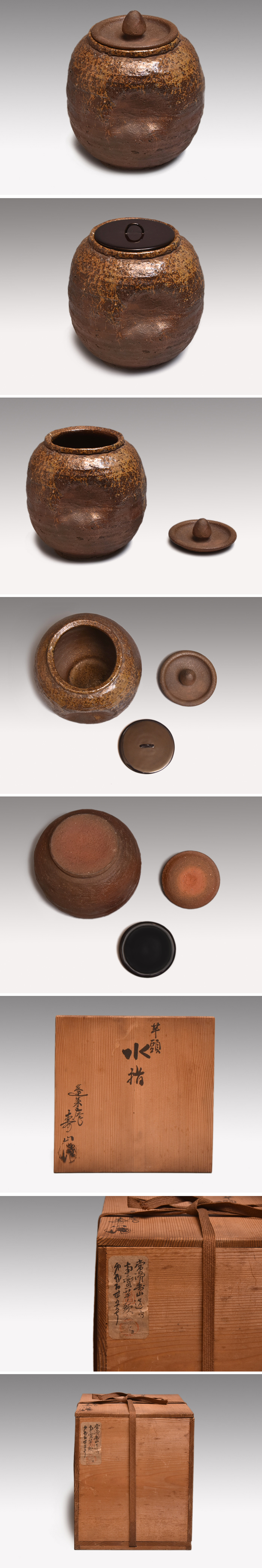 南蛮芋頭水指 尾張常滑 蓬莱庵 杉江寿山(作) 共蓋と塗蓋付 共箱 茶道具 詫茶 |