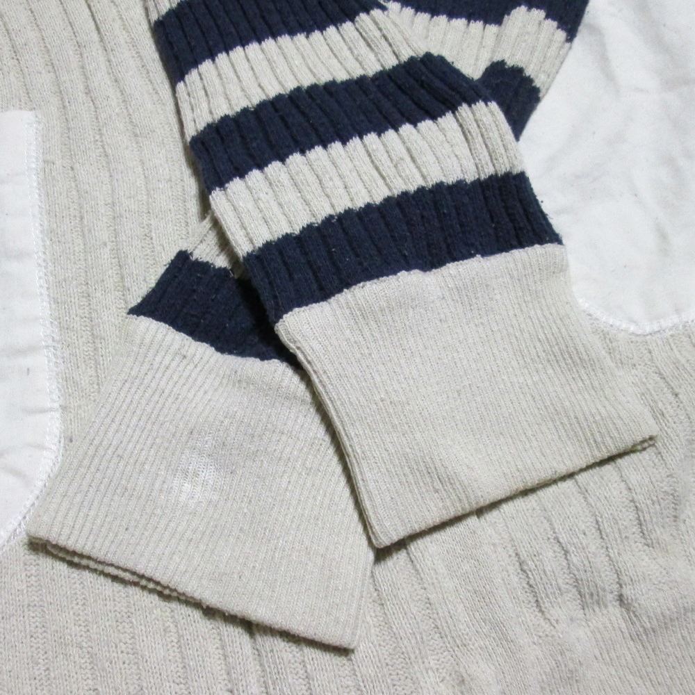 全体的に毛玉、毛羽立ち、首まわり・袖口に汚れ、袖口にキズがあります。