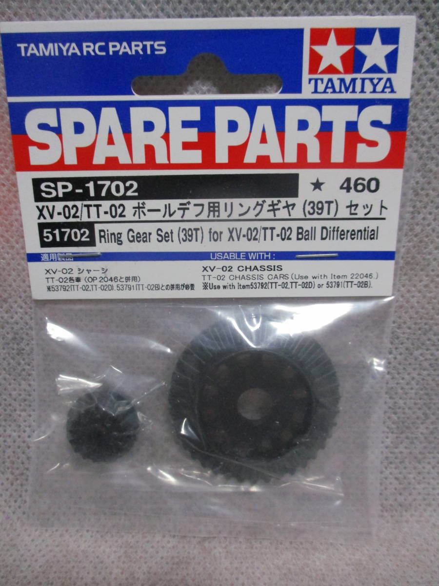 未使用未開封品 タミヤ SP-1702 XV-02/TT-02 ボールデフ用リングギヤ(39T) セット 51702、になります。