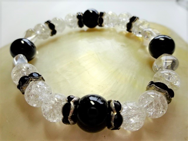 構成:オニキス10㎜4粒 水晶8㎜12粒 水晶ボタンカット4粒 付属品8粒